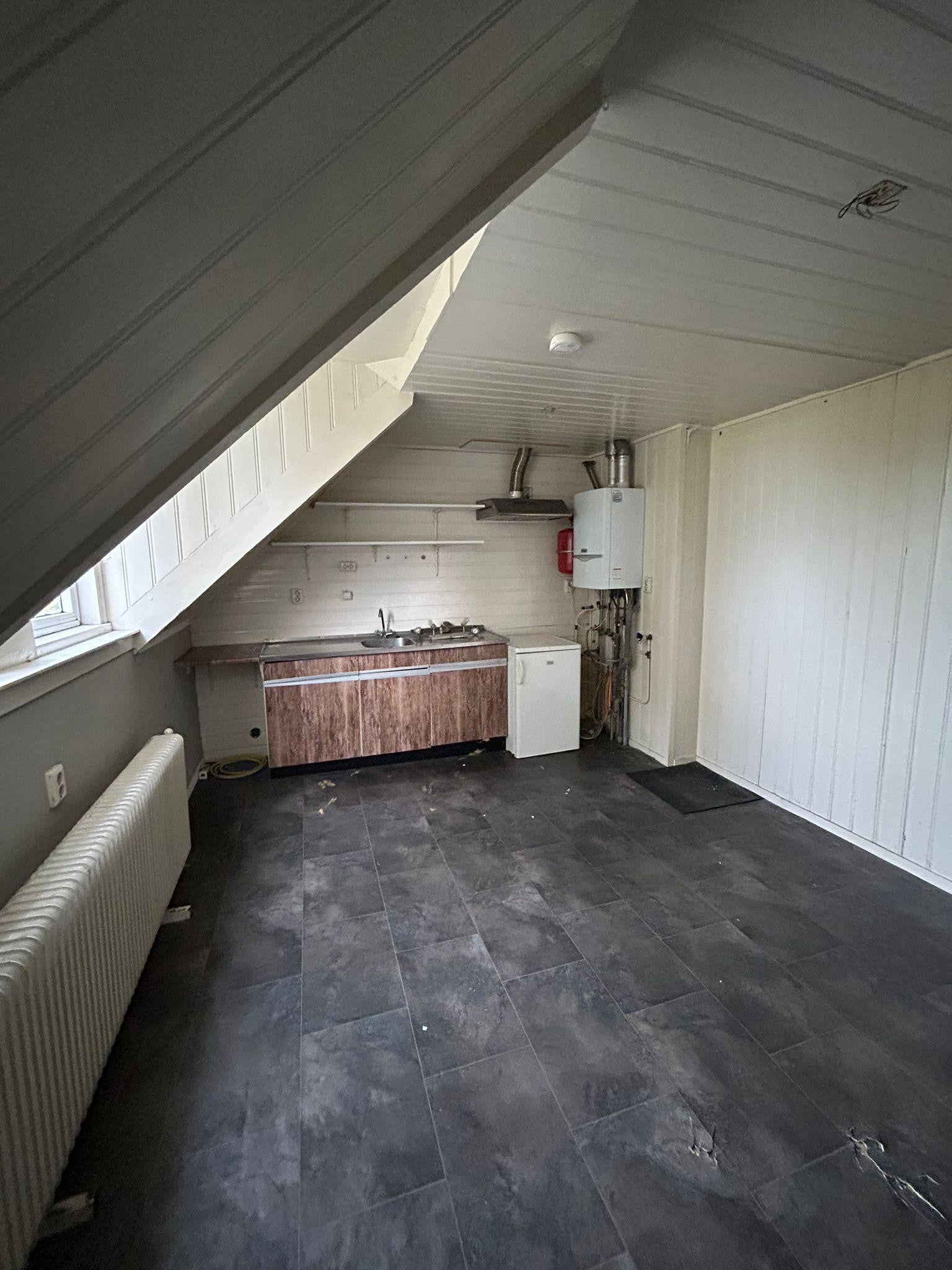 Op de tweede verdieping bevindt zich nog een slaapkamer of woonkamer. Aan de voorzijde is de keukenruimte gesitueerd. De keuken is eenvoudig ingericht met een basis keukenblok, voorzien van een spoelbak en kraan. In de keuken zijn tevens de Cv-installatie en de aansluitingen voor het witgoed aanwezig.