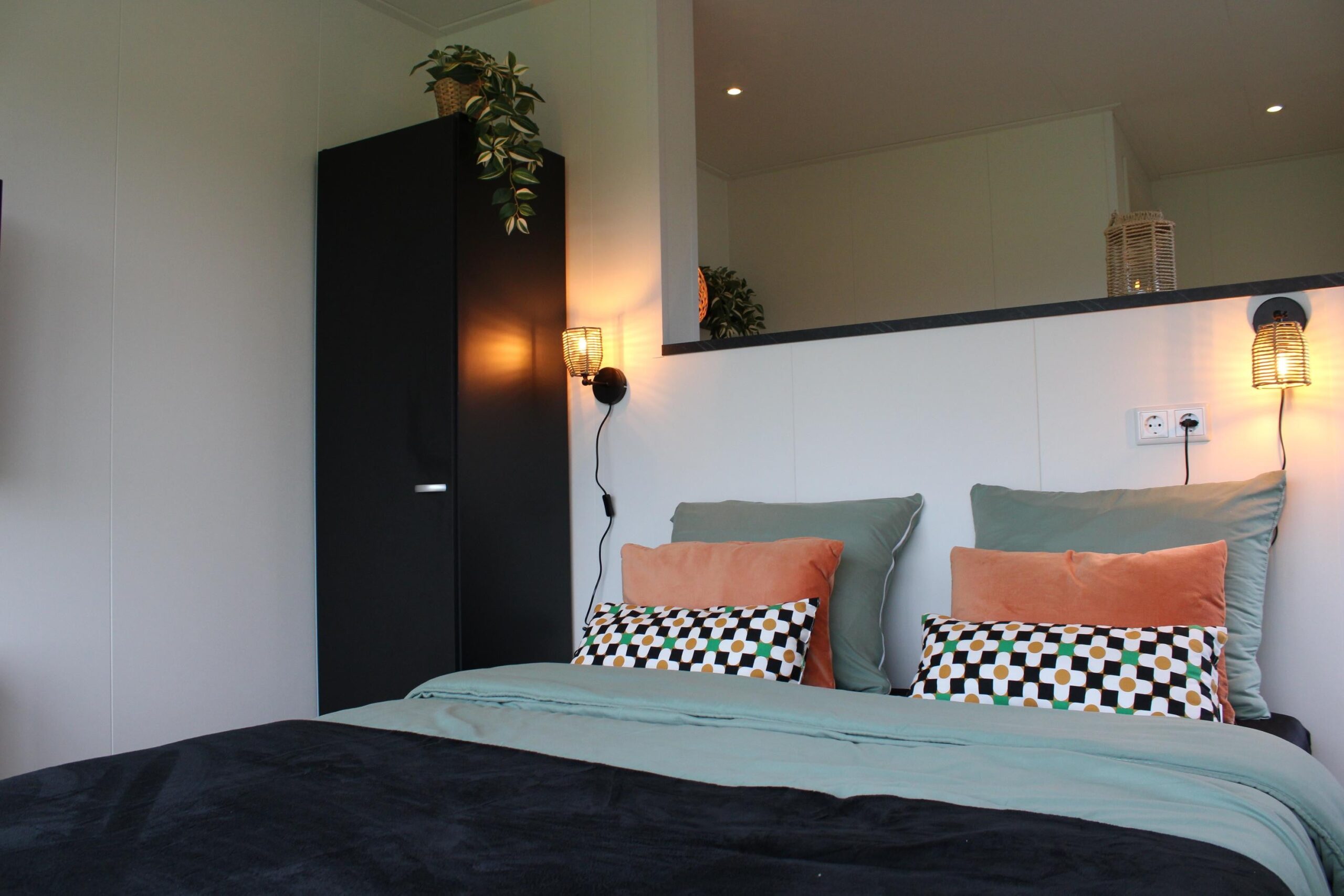 De in 2024 gebouwde lodge heeft een open indeling en is van alle moderne gemakken voorzien. Het slaapgedeelte is voorzien van een tweepersoonsbed en de badkamer heeft een stijlvolle inloopdouche, een hangend toilet en een wasmeubel.