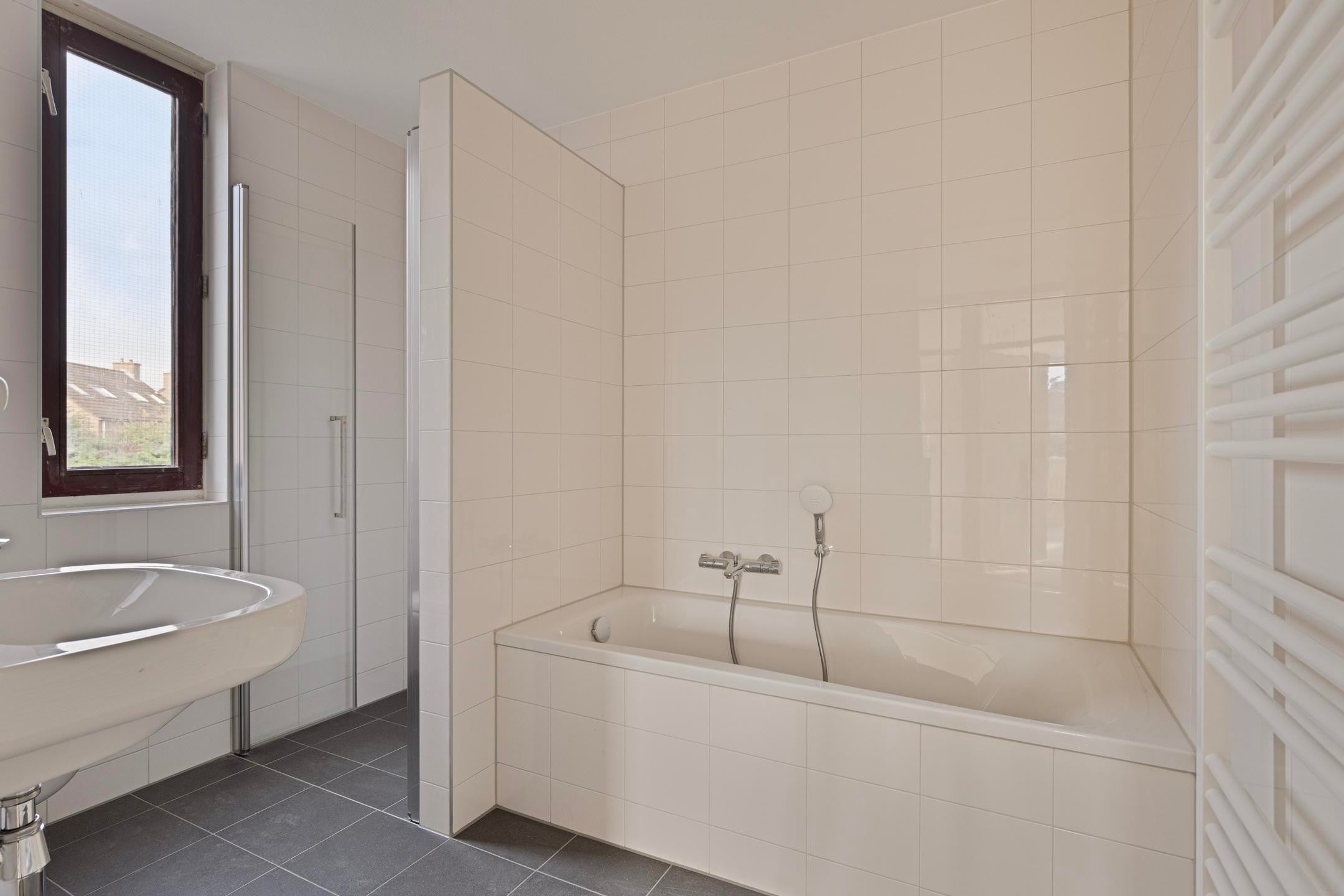 De badkamer is recentelijk gerenoveerd en is voorzien van een ligbad, douche, wastafel en tweede toilet.