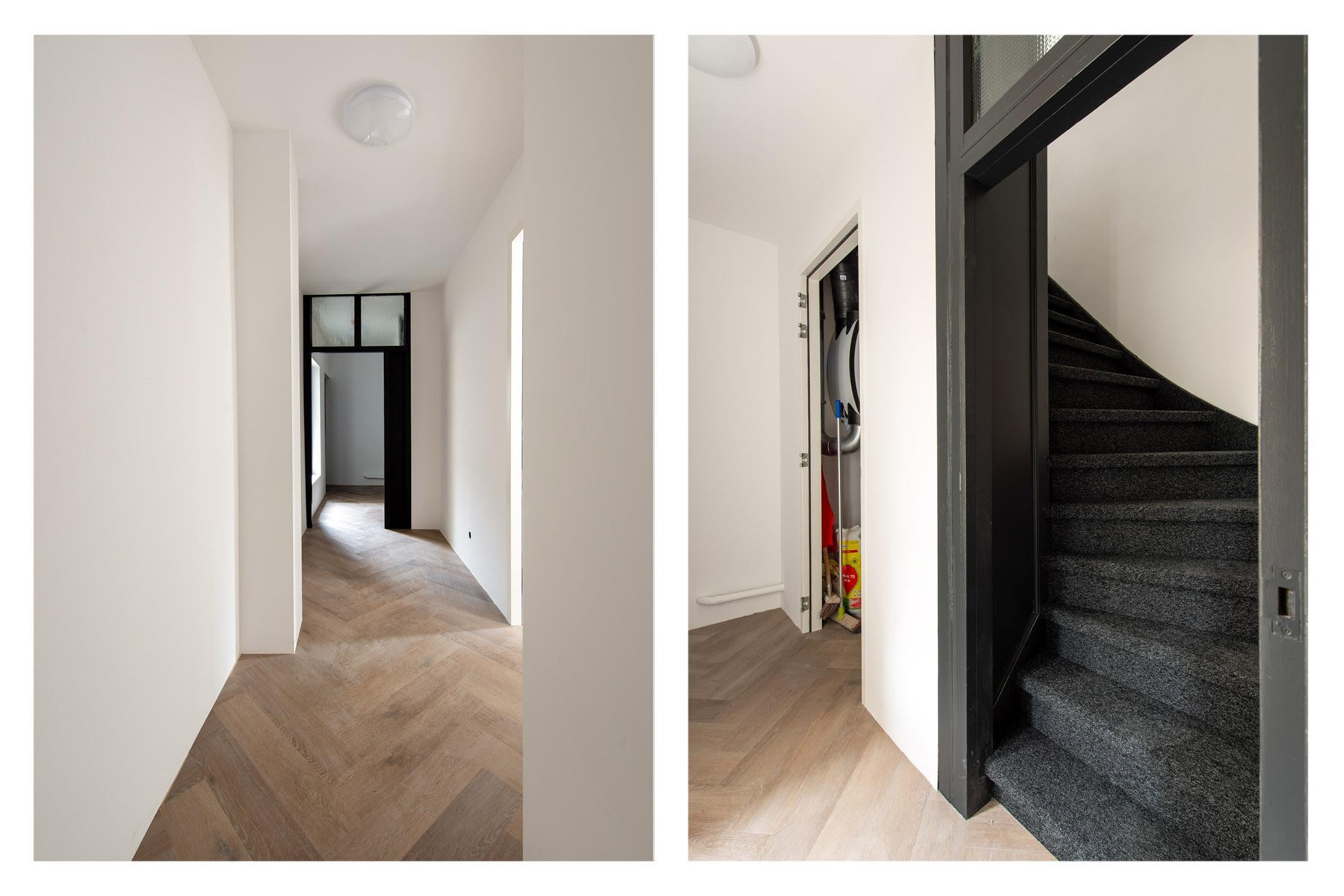 Op de begane grond bevindt zich een gezamenlijke entree, die wordt gedeeld met slechts één ander appartement. Hier vindt u direct de trapopgang naar de eerste en tweede verdieping.