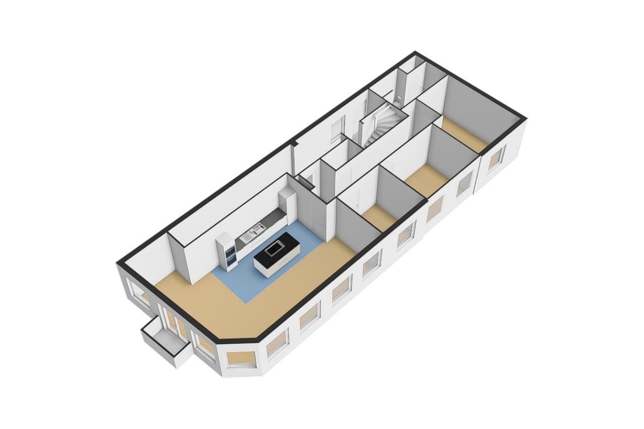 Aan de voorzijde van de woning bevindt zich de royale woonkamer met open keuken. Door de vele ramen is dit een heerlijk lichte leefruimte, waar u zowel een comfortabele zithoek als een ruime eethoek kwijt kunt. De moderne keuken is voorzien van hoogwaardige inbouwapparatuur en een kookeiland dat uitnodigt tot gezellig kokkerellen en natafelen.