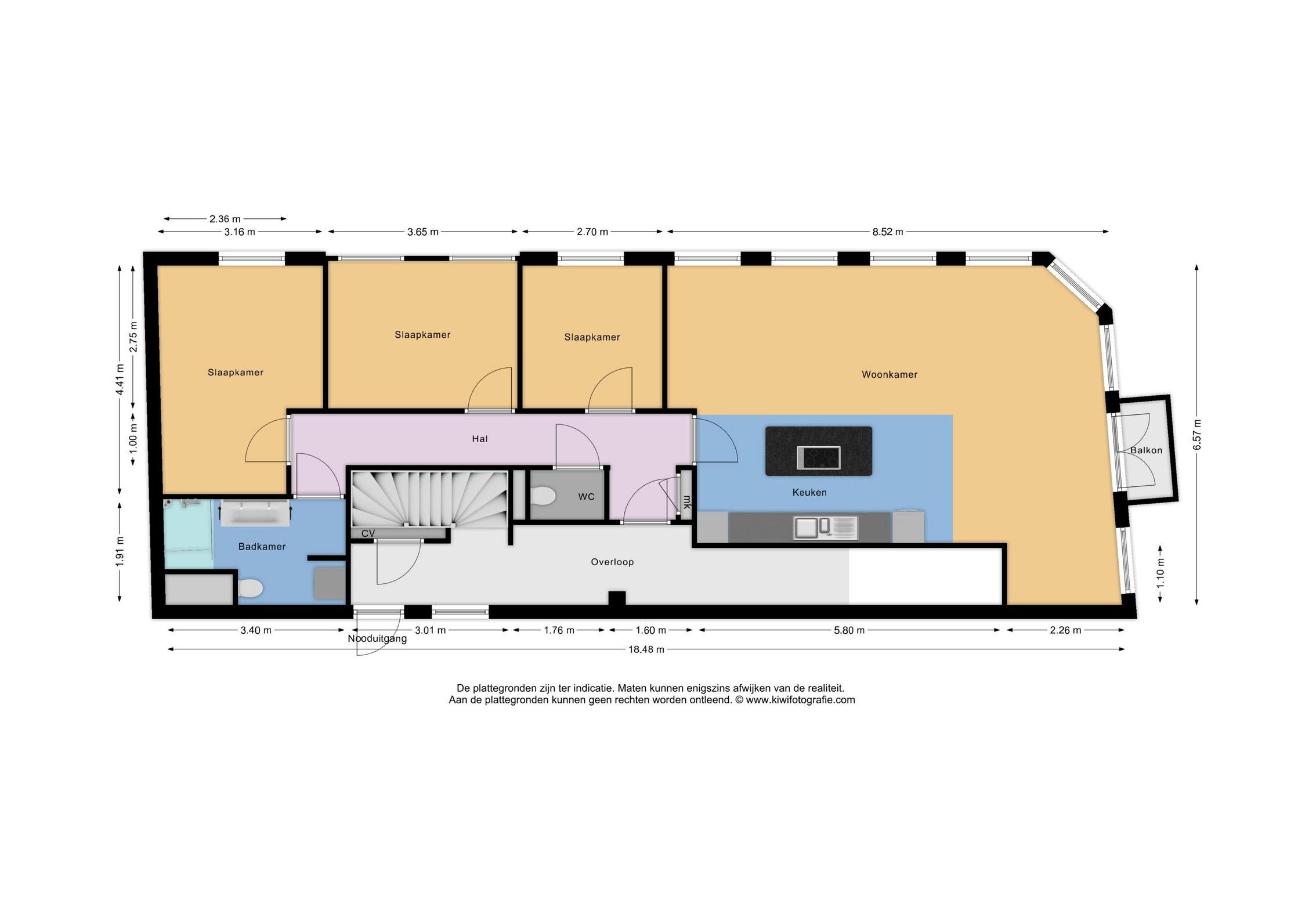 Bij binnenkomst valt direct de ruime en lichte hal op, die toegang geeft tot de woonkamer, drie slaapkamers, badkamer en separaat toilet.