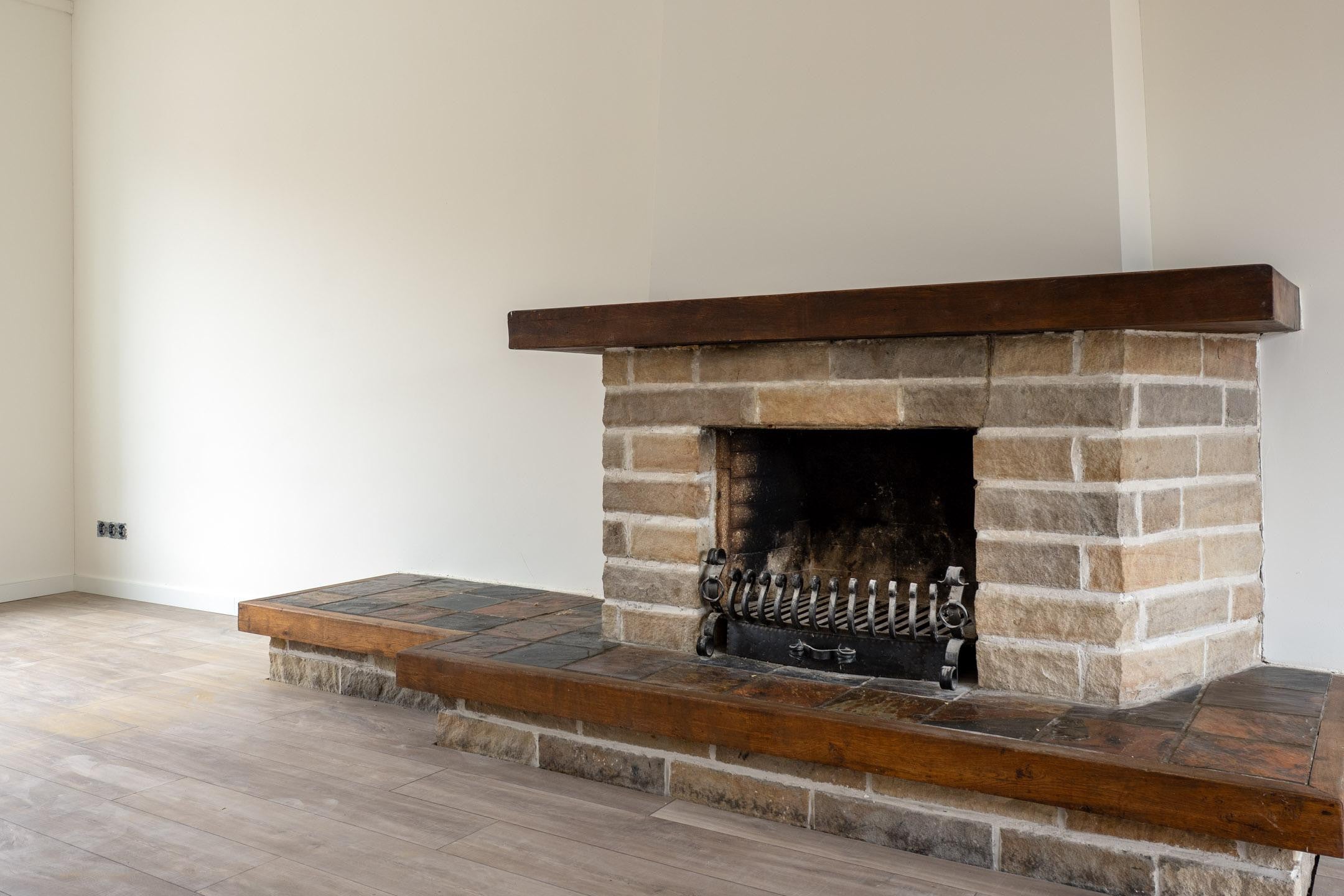 - Royale woonkamer van 30 m² met schuifpui naar de tuin en sfeervolle open haard.