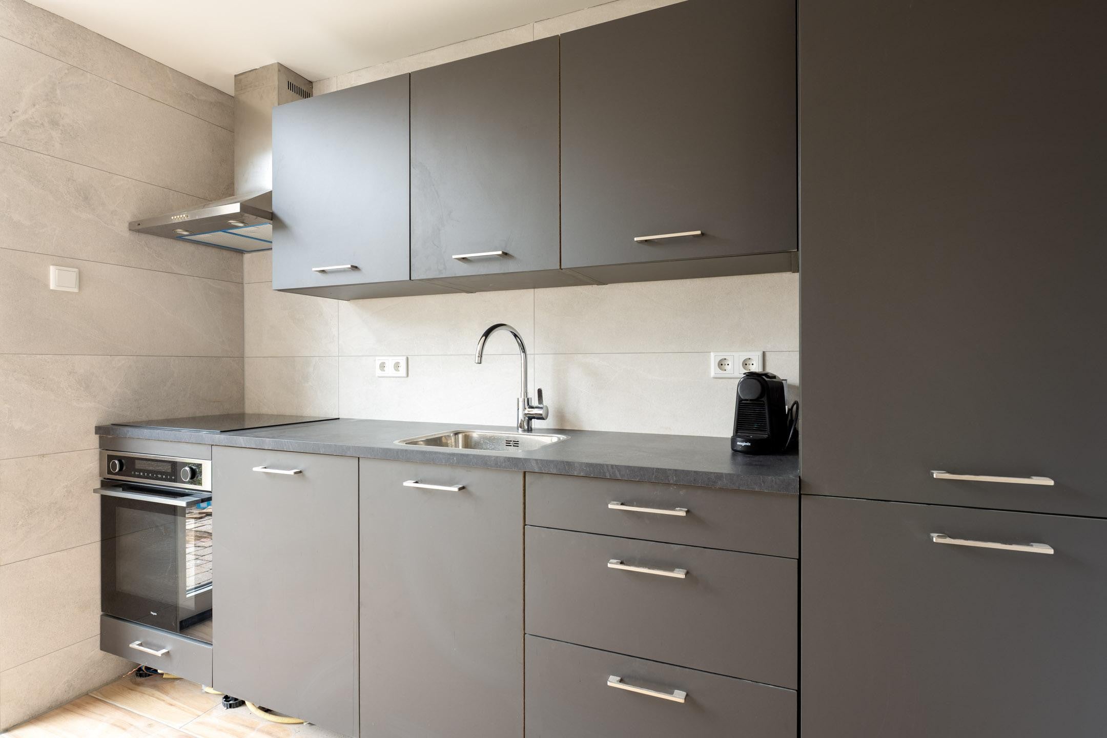- Moderne keuken met alle inbouwapparatuur: inductiekookplaat, afzuigunit, combi-oven, koel-vriescombinatie, vaatwasser en veel kastruimte.