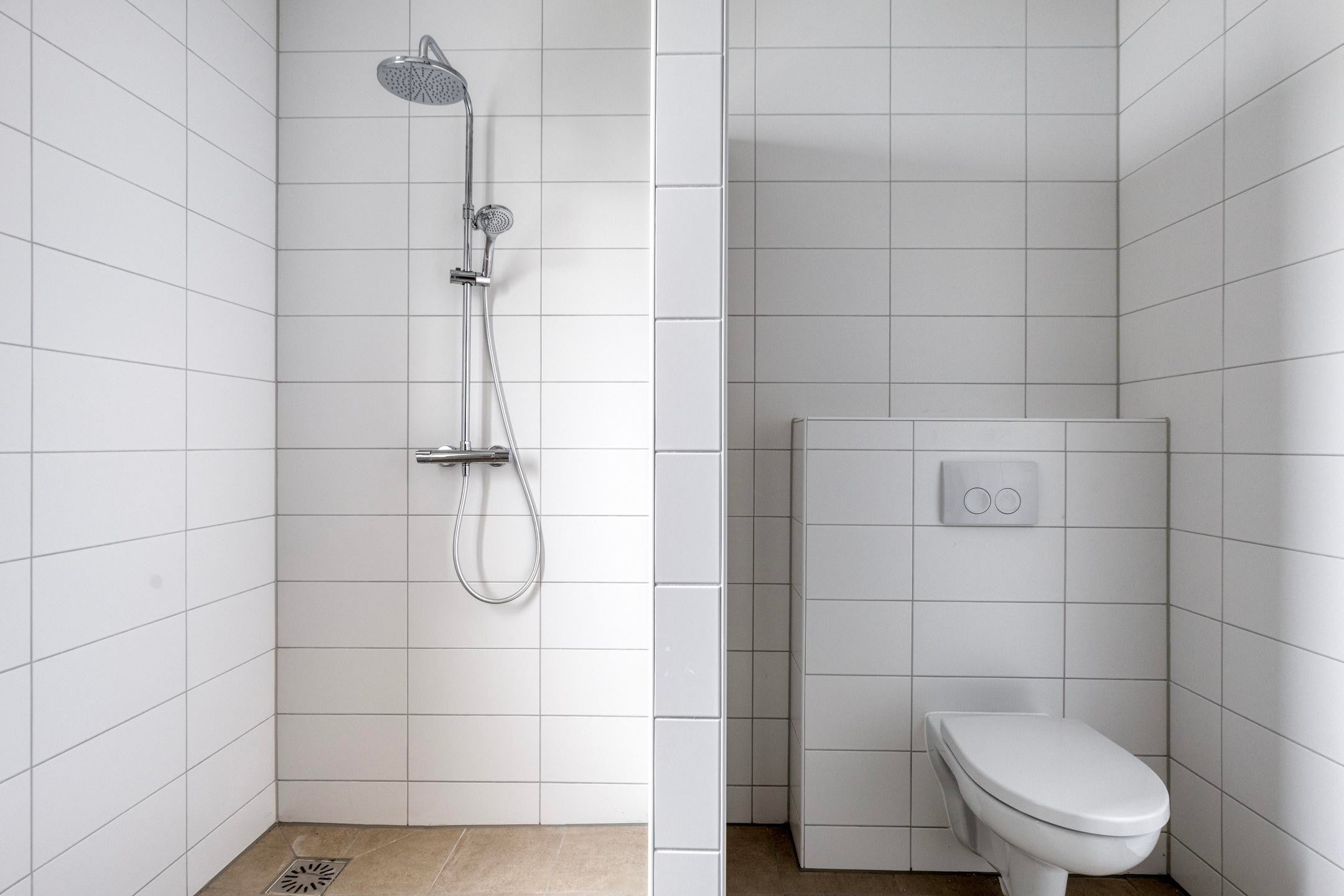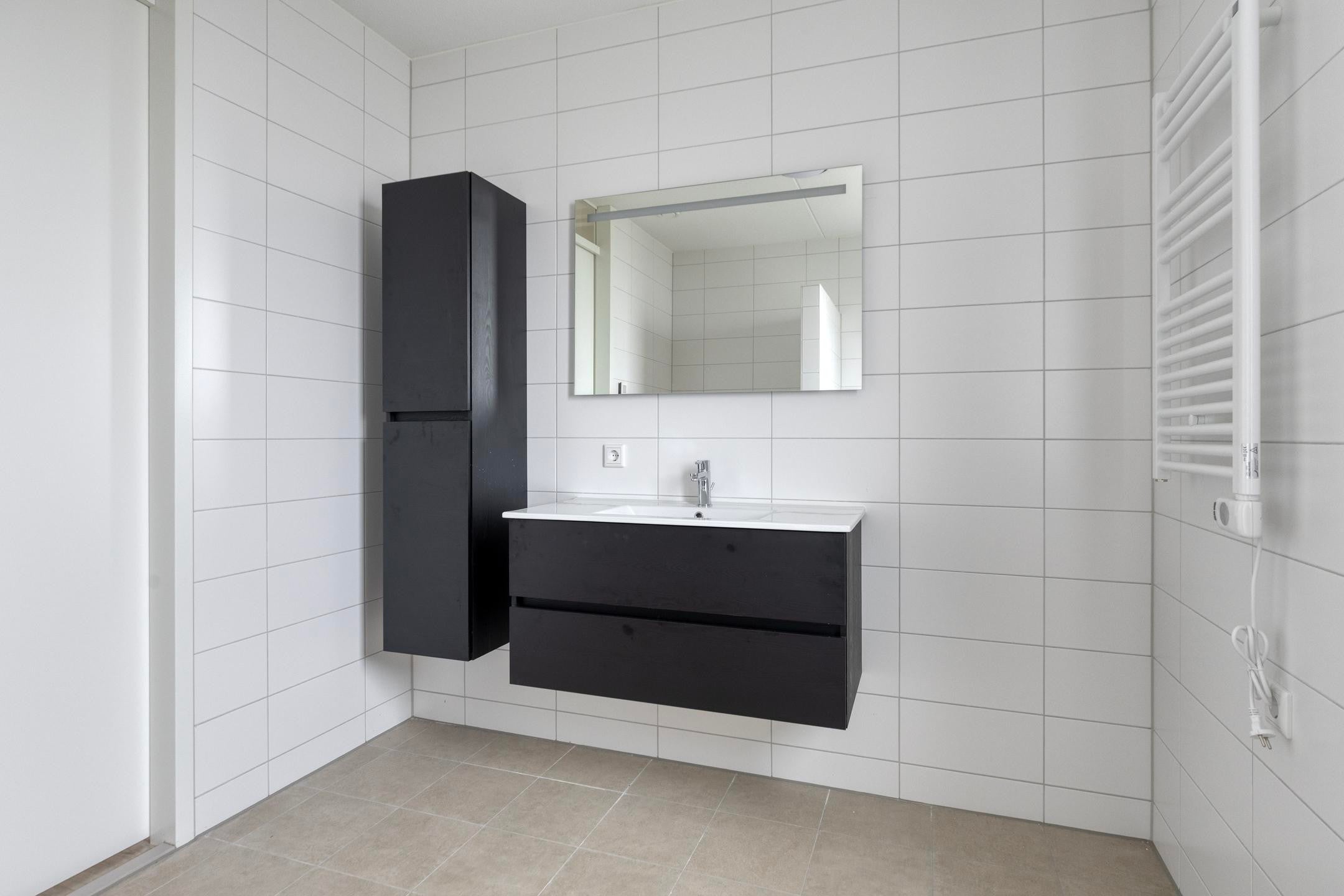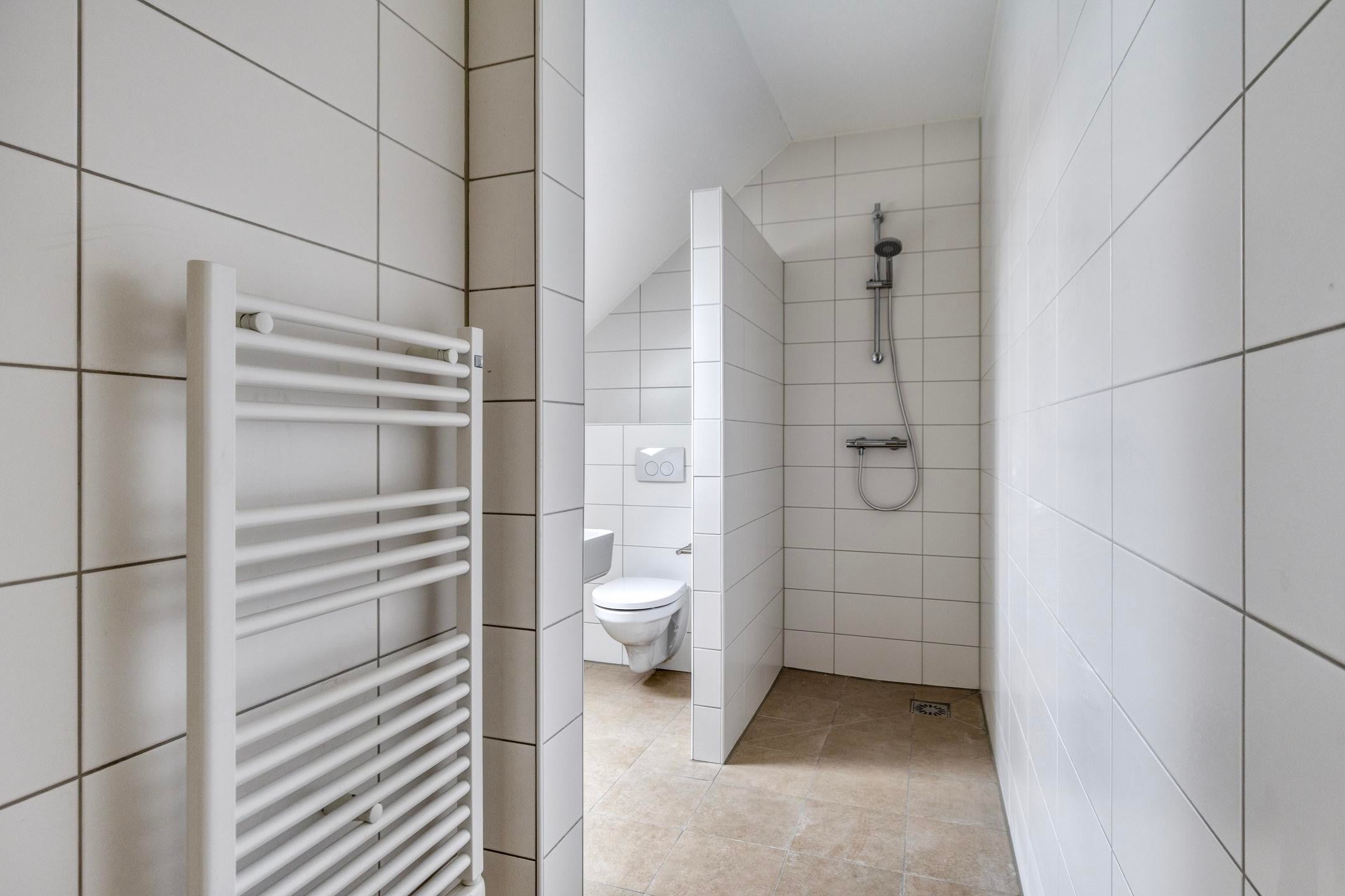 - Moderne badkamer met inloopdouche, 2e toilet, wastafel met meubel, extra kastruimte en een handdoeken radiator.