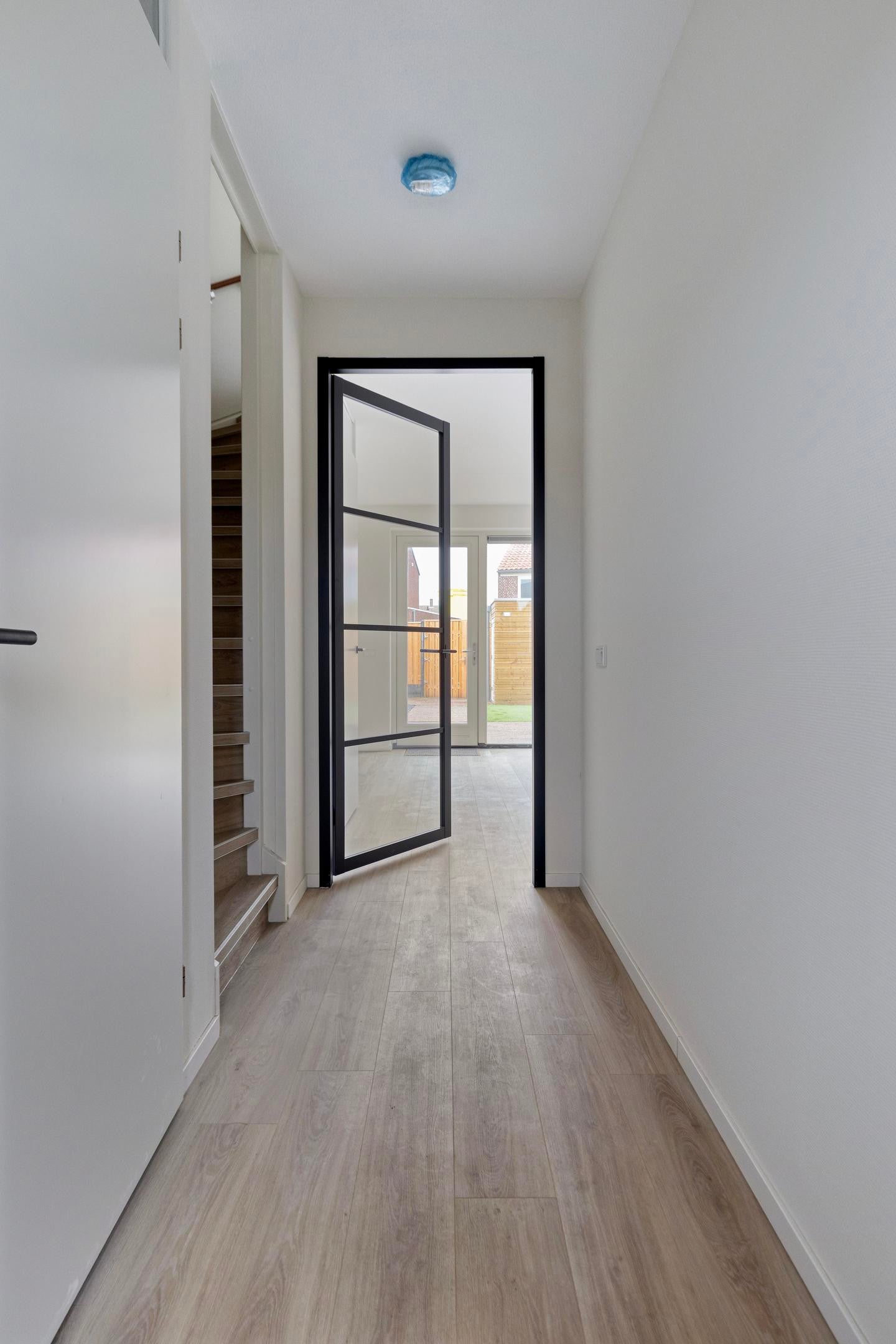 - Ruime, lichte woonkamer met toegang tot bergkast onder de trap en toegang naar de tuin.