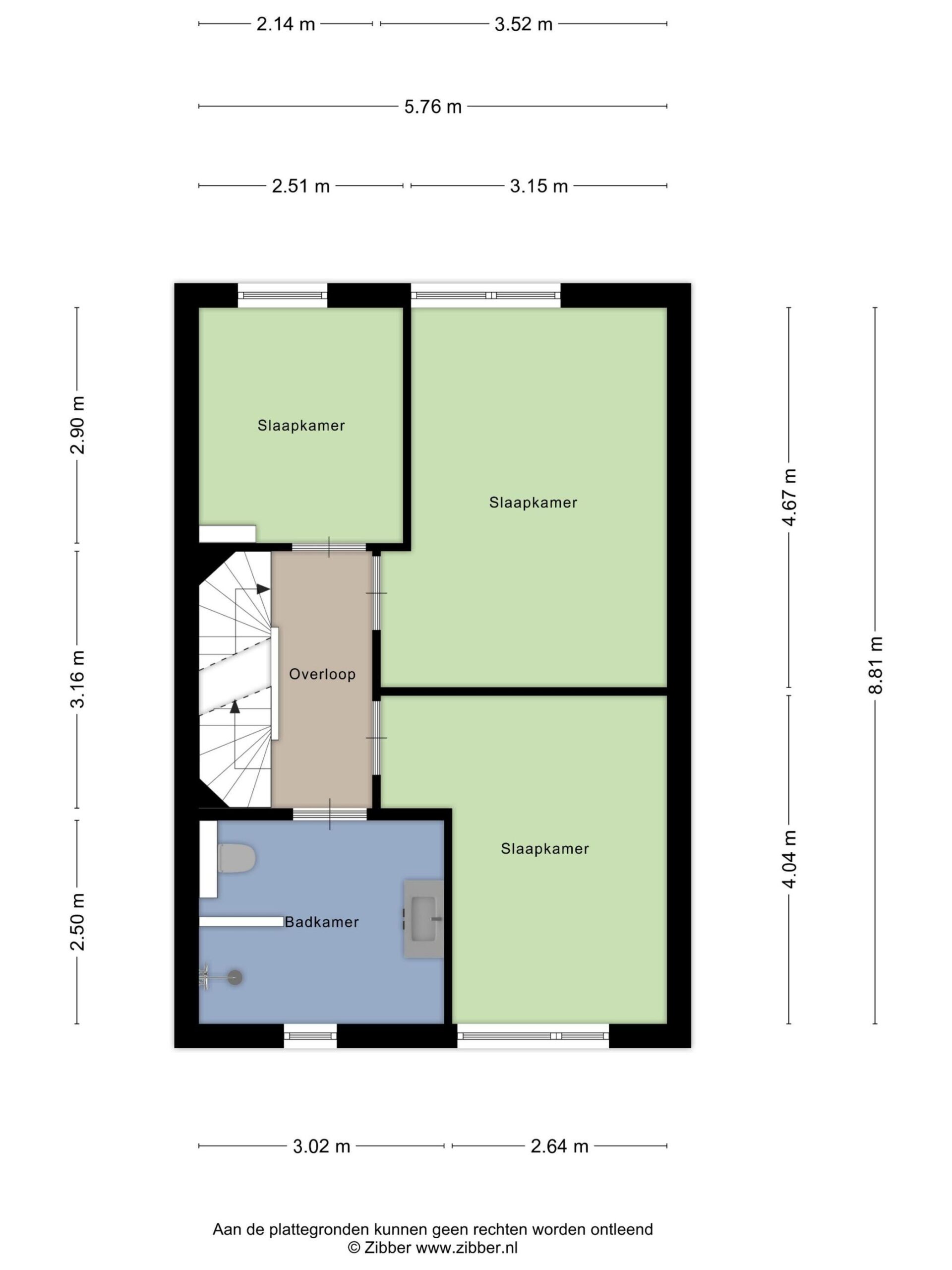 - 3 slaapkamers van 7, 12 en 15 m2.