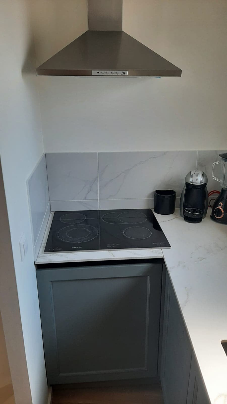 De keuken is gesitueerd aan de achterzijde van het van het gebouw en is voorzien van een elektrische kookplaat, afzuigkap en een spoelbak met mengkraan.