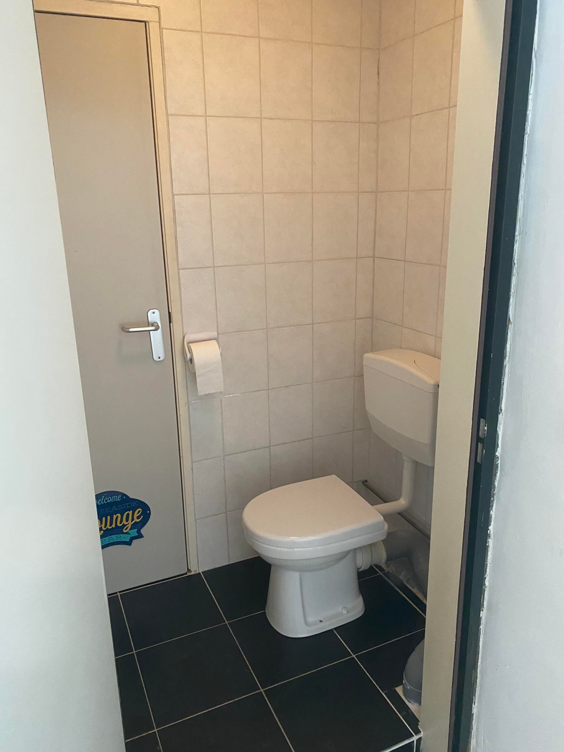 De toilet is bereikbaar vanuit de woonkamer en is gelegen direct achter de keuken.