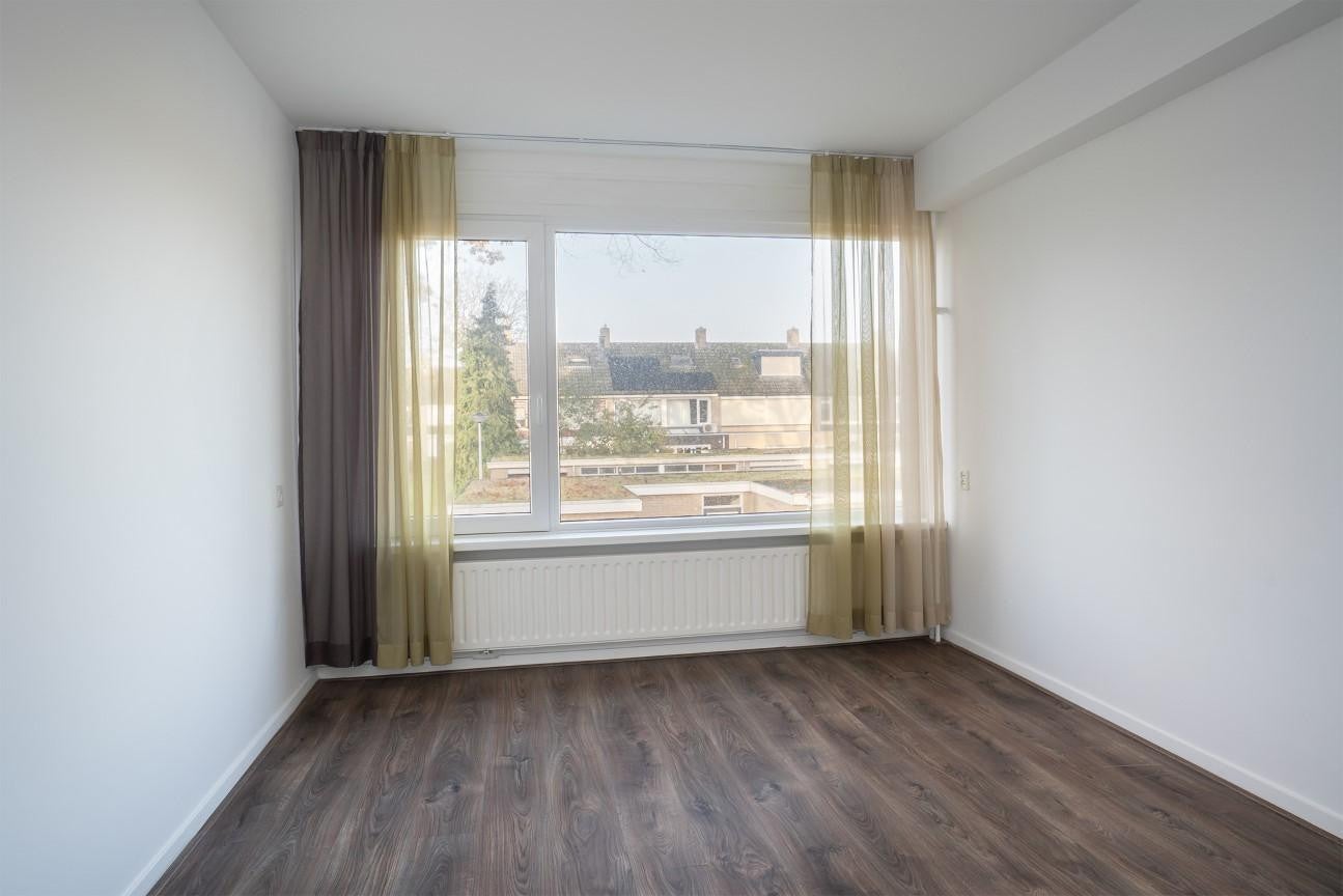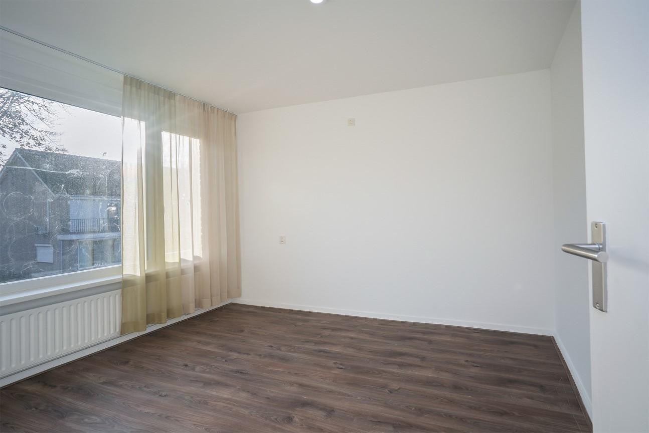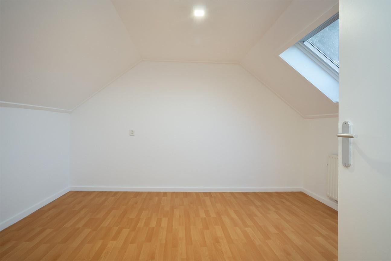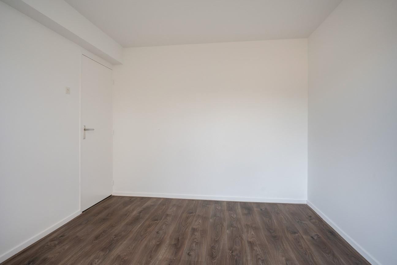 De tweede slaapkamer (circa 12,5 m²) aan de achterzijde van de woning heeft een laminaat vloer, stucwerk wanden en stucwerk plafond.