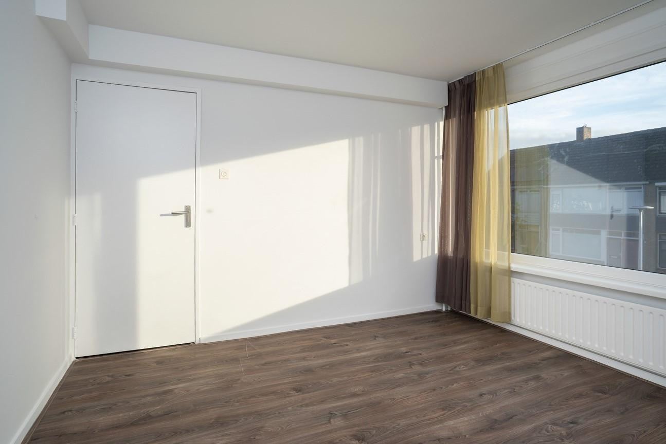 De eerste slaapkamer (circa 9 m²) aan de achterzijde van de woning heeft een laminaat vloer, stucwerk wanden en stucwerk plafond.