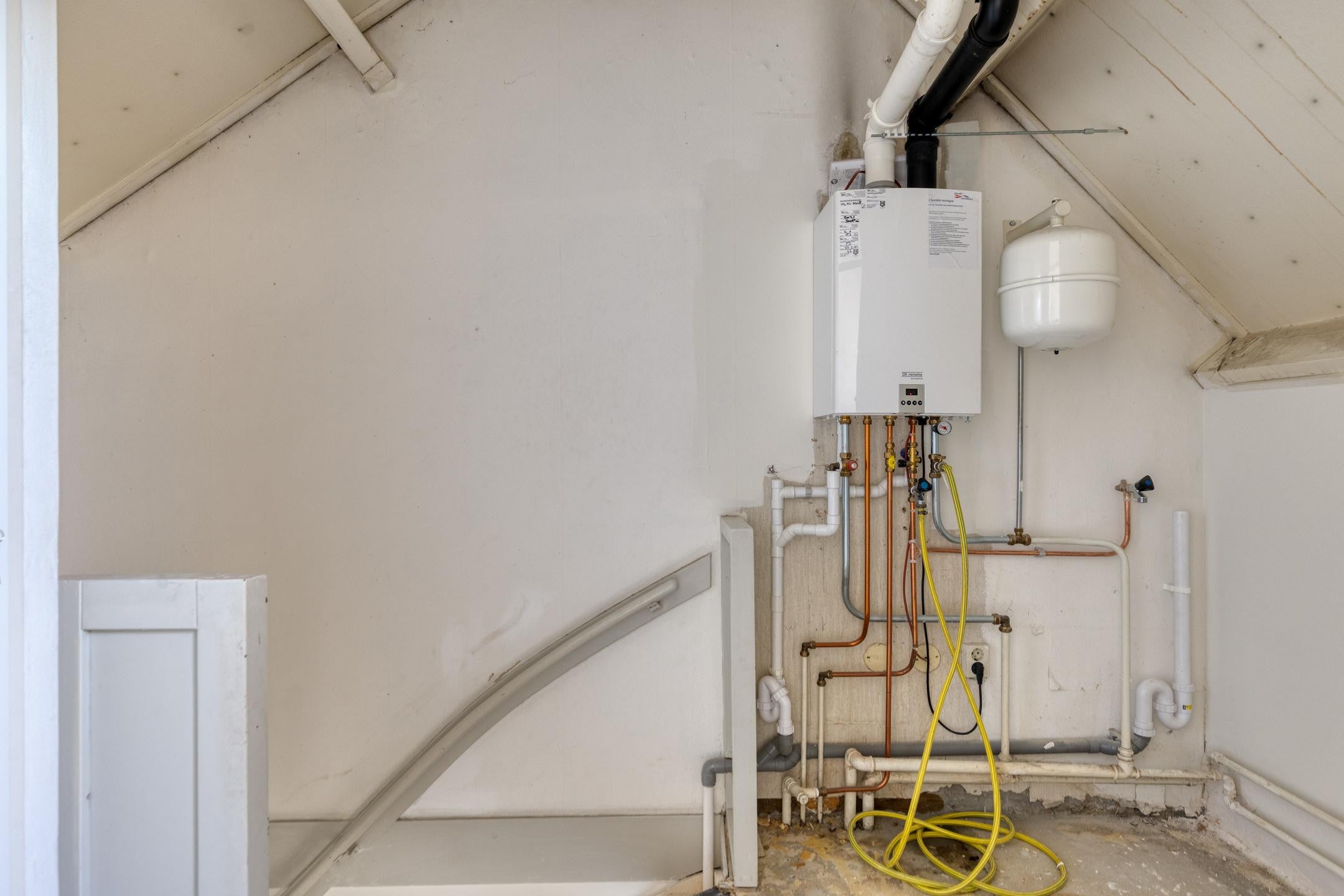 Met een vaste trap is de tweede verdieping bereikbaar. Op de overloop van de tweede verdieping vind u de opstelplaats voor de wasmachine en droger. Daarnaast vind u op de overloop de opstelplaats van de Cv-installatie, een bergkast en de toegang naar de derde slaapkamer (zolderkamer).