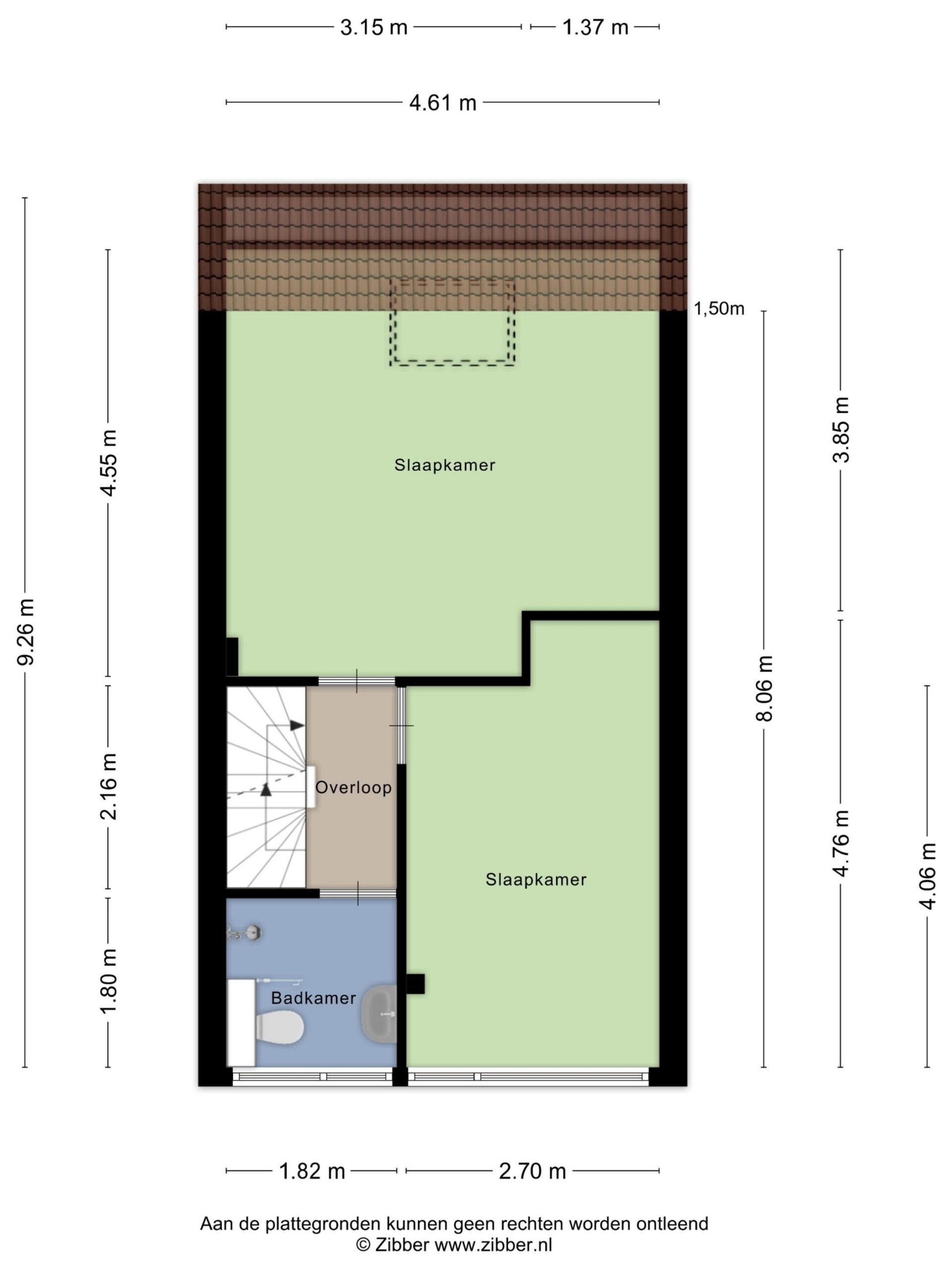 De hoofd slaapkamer is gelegen aan de achterzijde van de woning. Deze kamer heeft een erg ruime opzet met een riant dakraam inclusief verduistering.