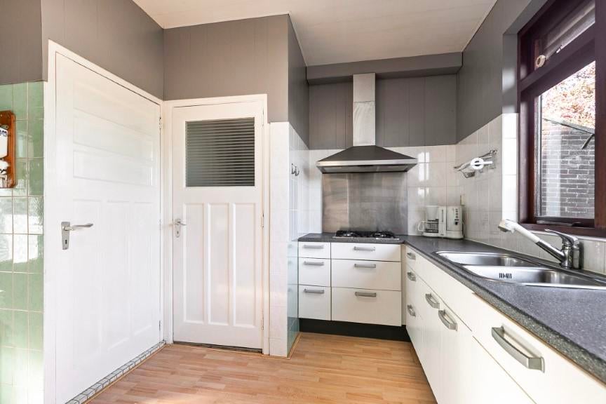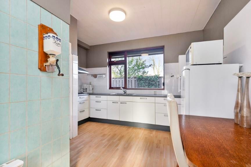 Vanuit de keuken zijn de toilet, badkamer en achter portaal bereikbaar.