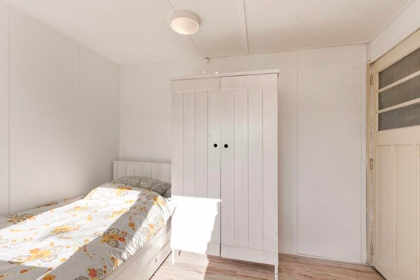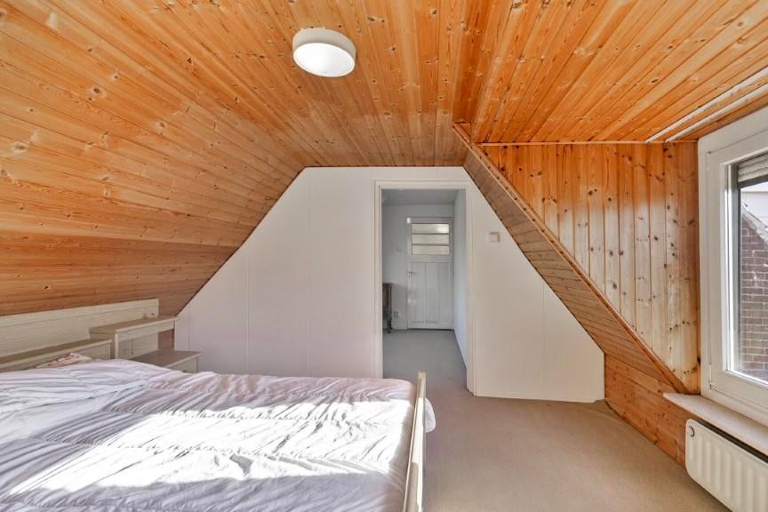 Slaapkamer 1 is verdeelt in twee ruimtes met een voorkamer en achterkamer (slaapgedeelte). De totale ruimte is circa 15 m2. De kamer is voorzien van een lichte tapijtvloer, dakkapel, draai/kiep ramen en rolluiken.