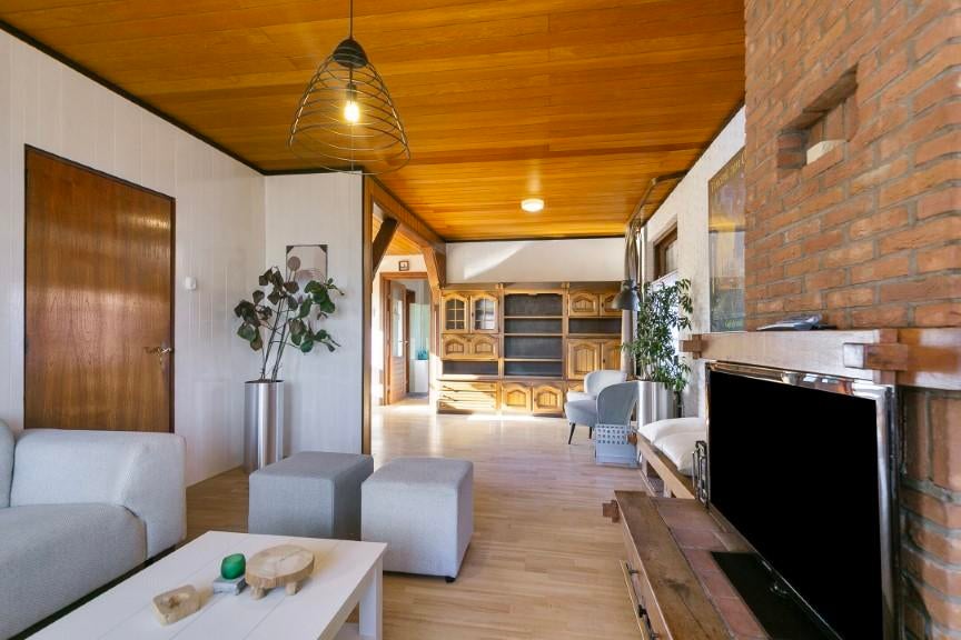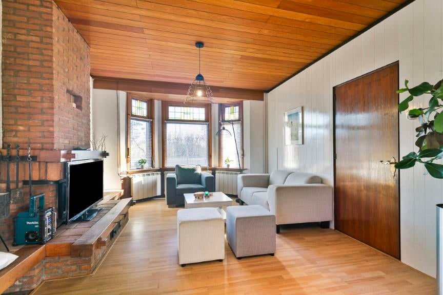 De open haard bij de schouw is niet in werking.
