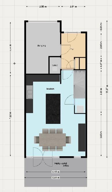 Vanuit de entree heeft u toegang tot de inpandige berging ,toilet, meterkast en woonkeuken.