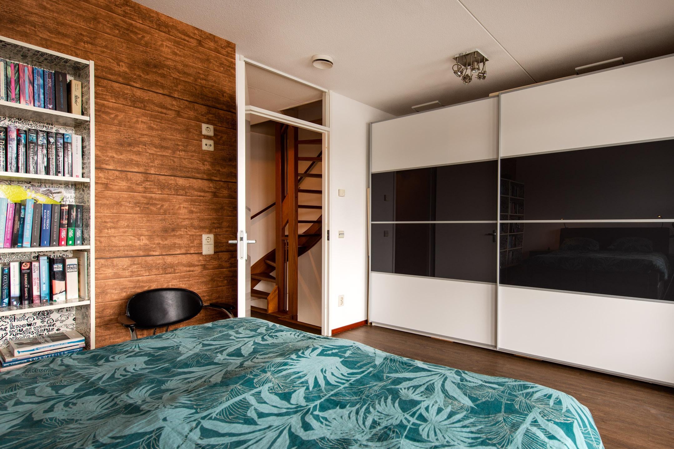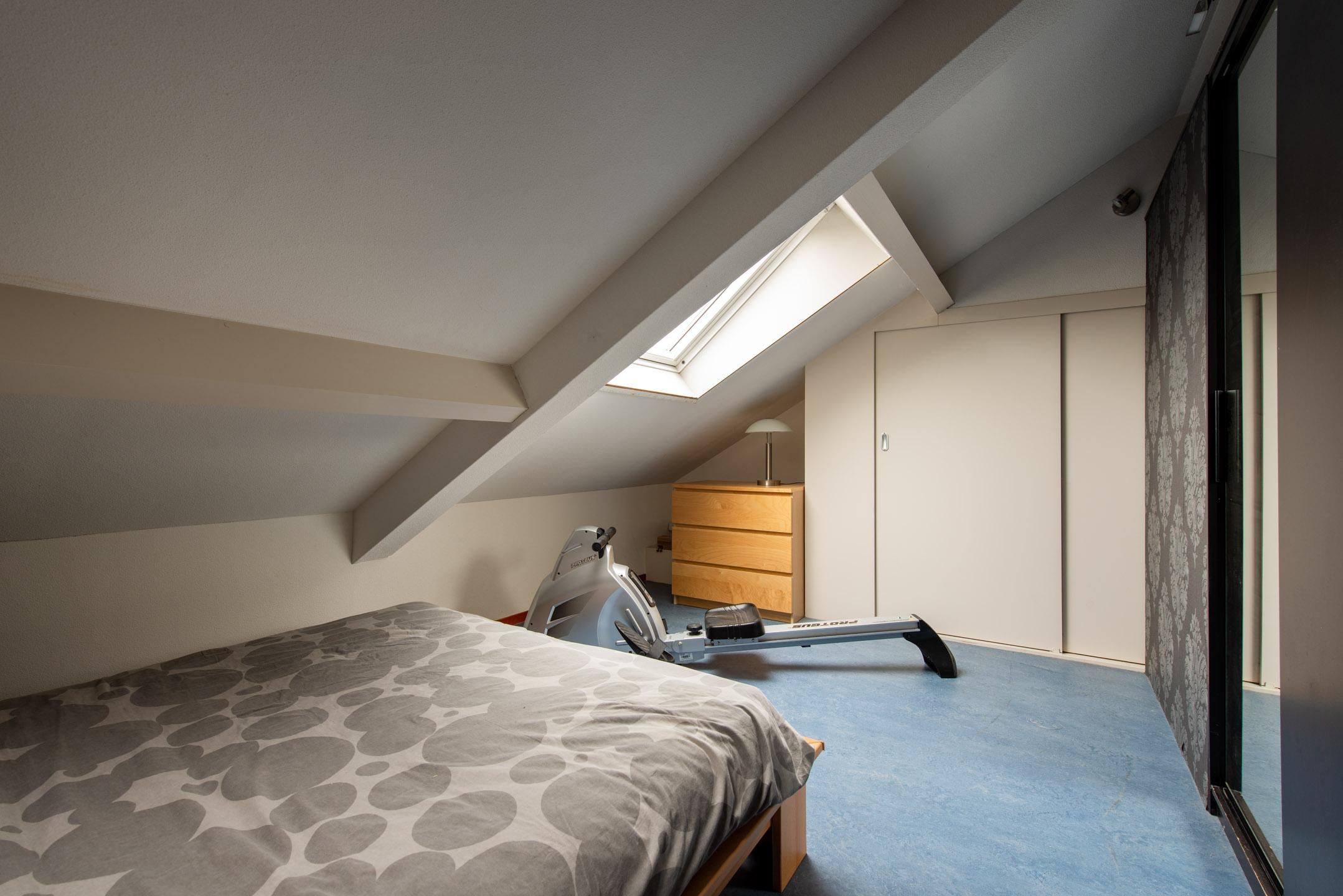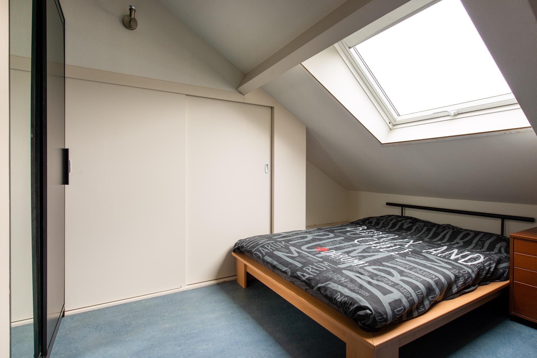 Slaapkamer 4: ruime kamer gelegen aan de achterzijde van de woning met een velux dakraam en inbouwkasten.