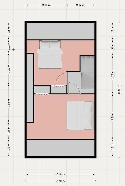 Aankomend op de overloop van de tweede verdieping heeft u toegang tot twee slaapkamers, de badkamer en inloopkast. plafond is voorzien spuitwerk. De wanden zijn afgewerkt met stucwerk.