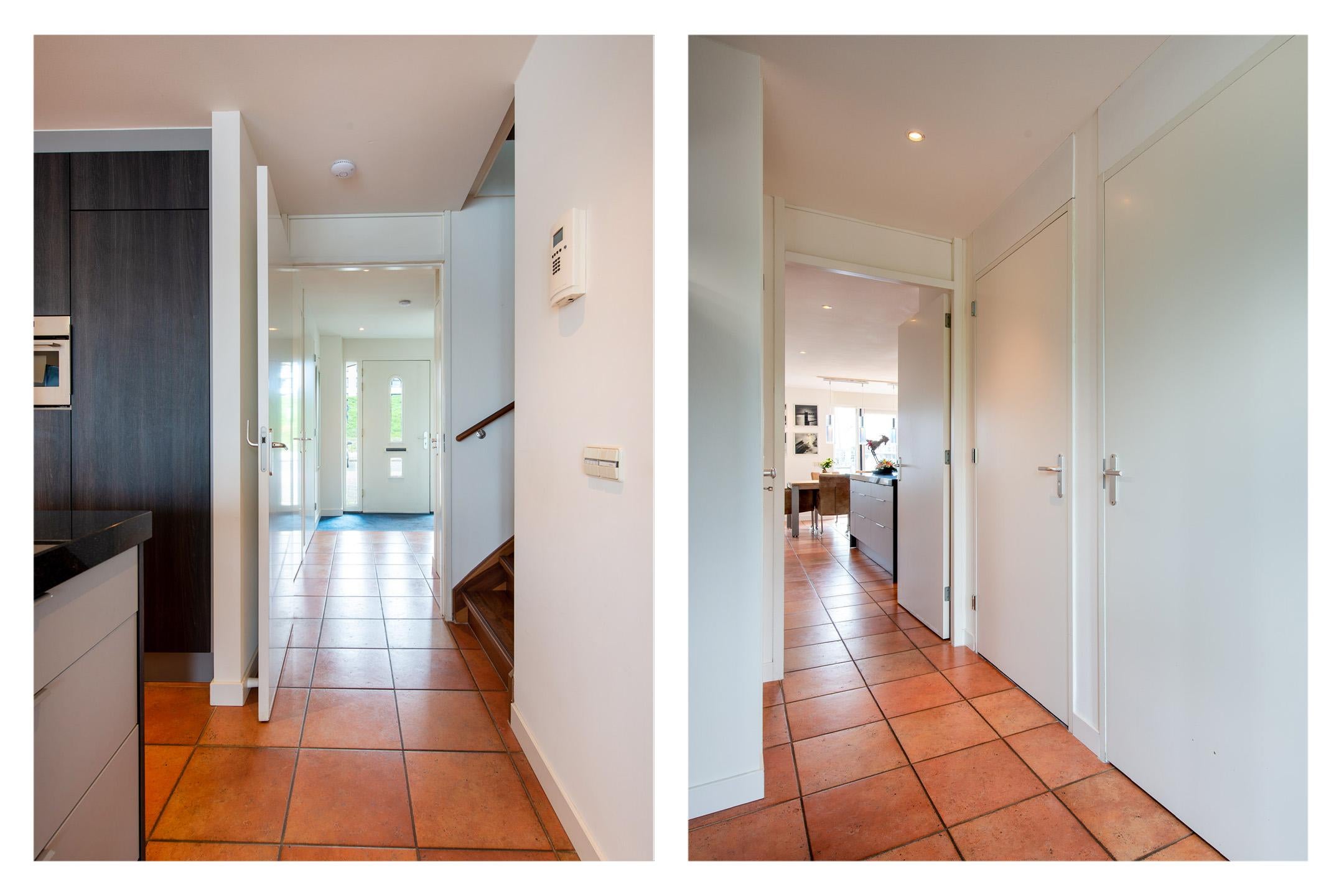 Vanuit de entree heeft u toegang tot de inpandige berging ,toilet, meterkast en woonkeuken.