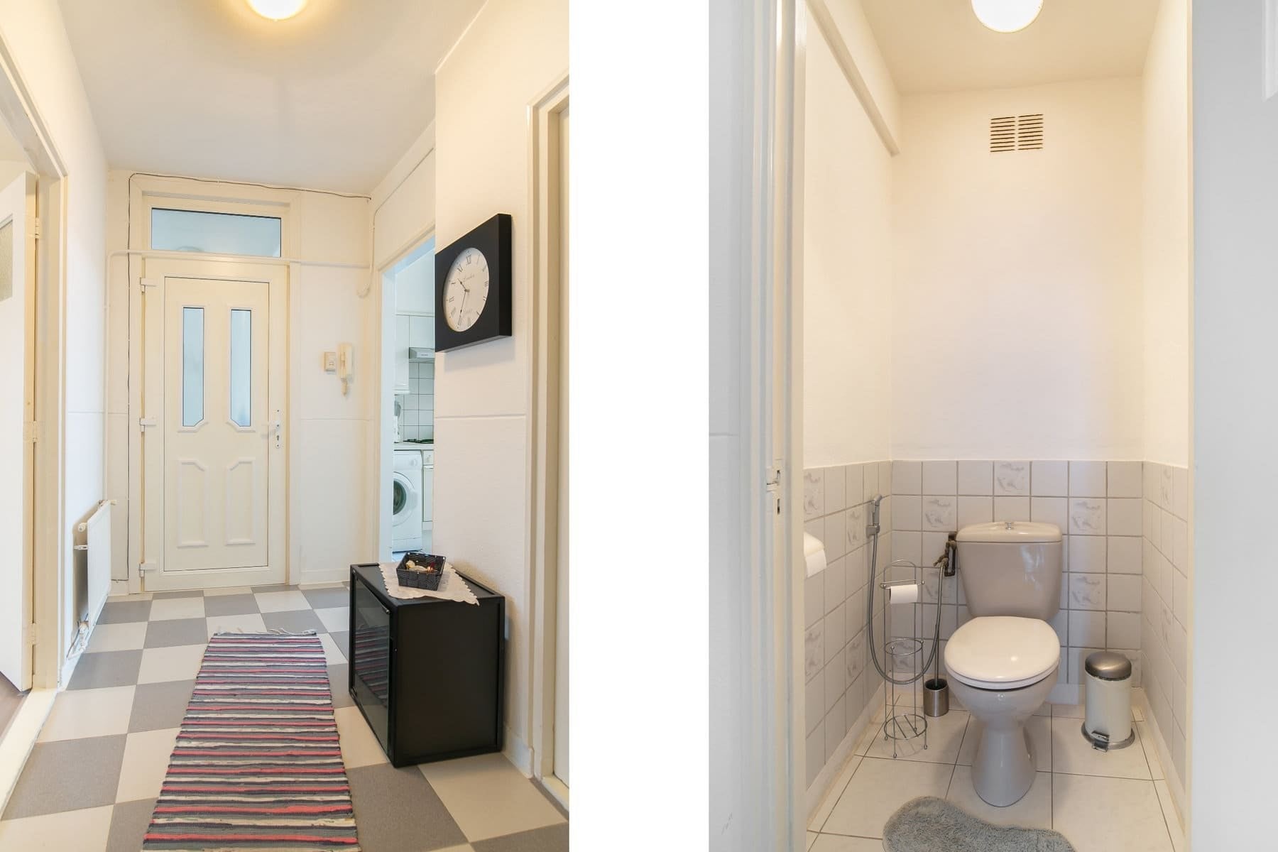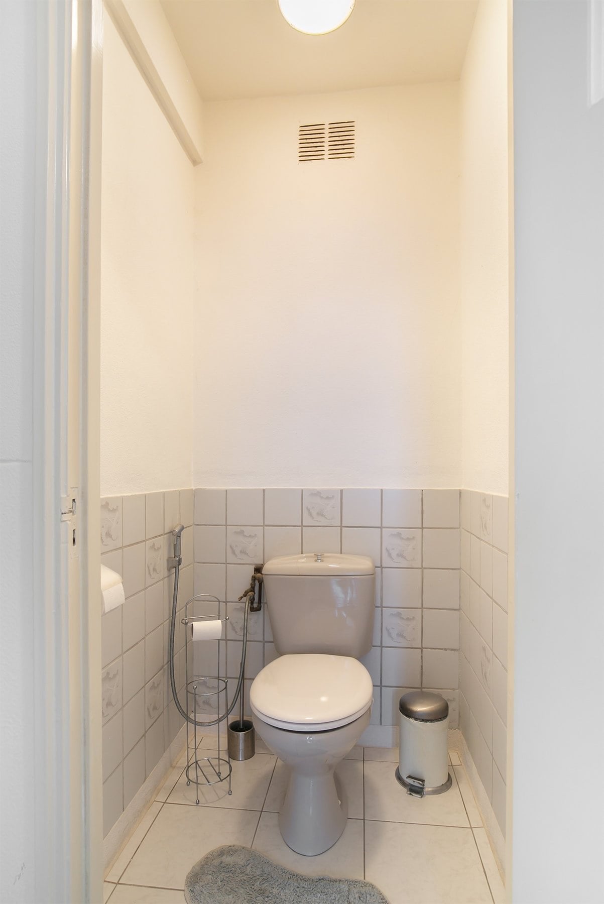 - Toilet: deels betegeld en voorzien van toilet en sproeier.