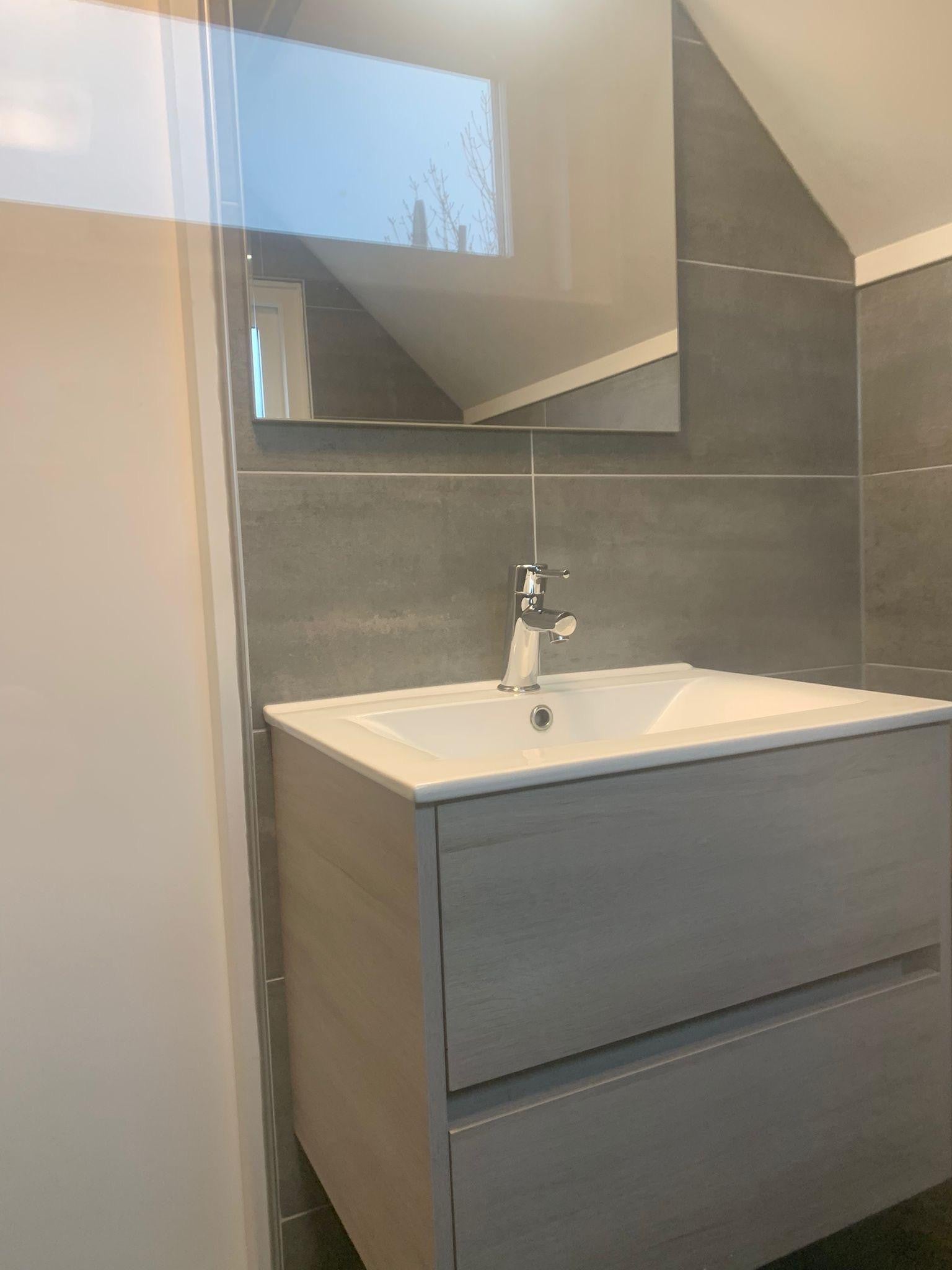 Via de trap in de woonkamer bereikt u de eerste verdieping. Hier bevindt zich een ruime slaapkamer. Vanuit de slaapkamer heeft u directe toegang tot de badkamer, die is voorzien van een douche en wastafel.