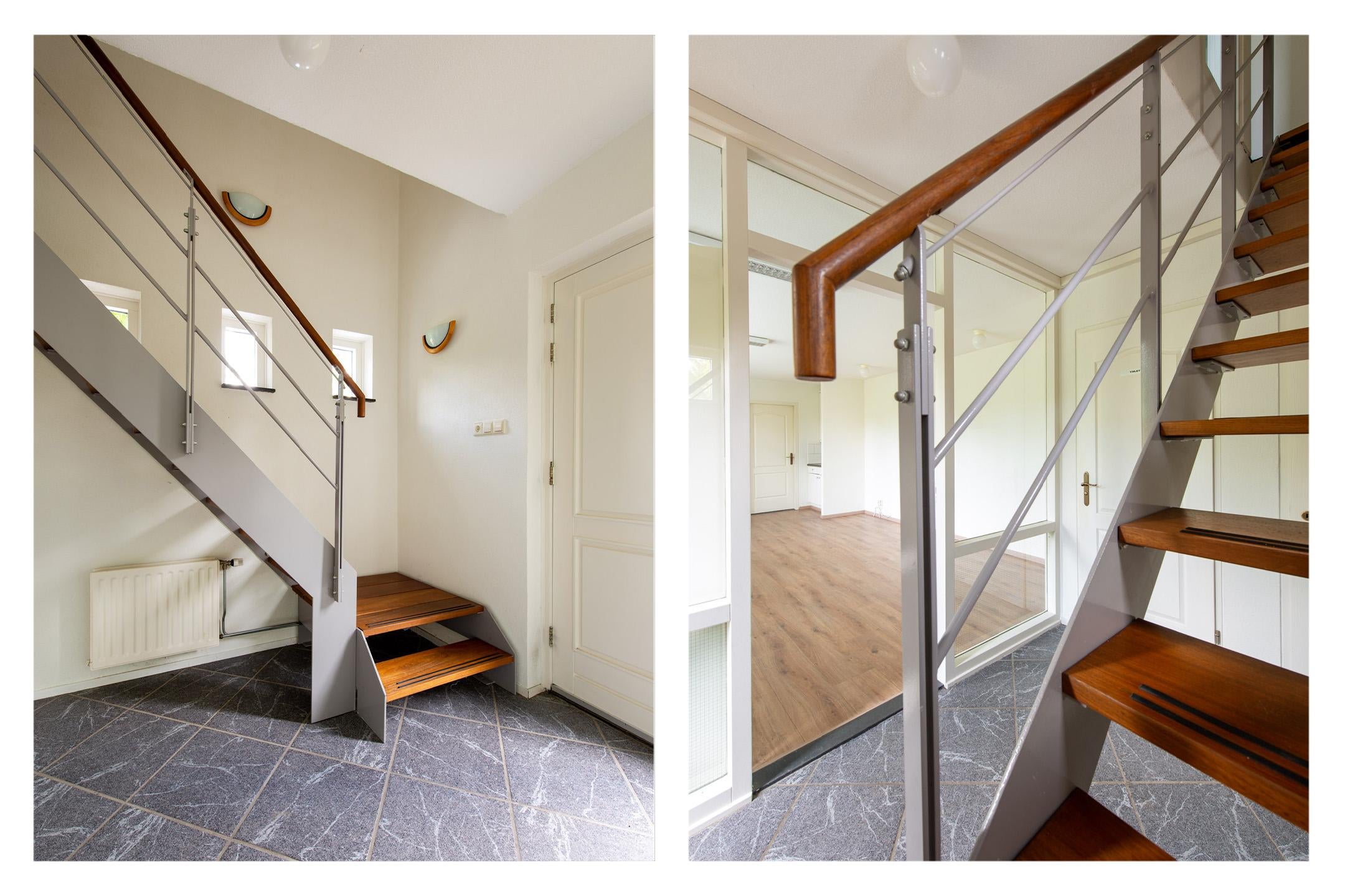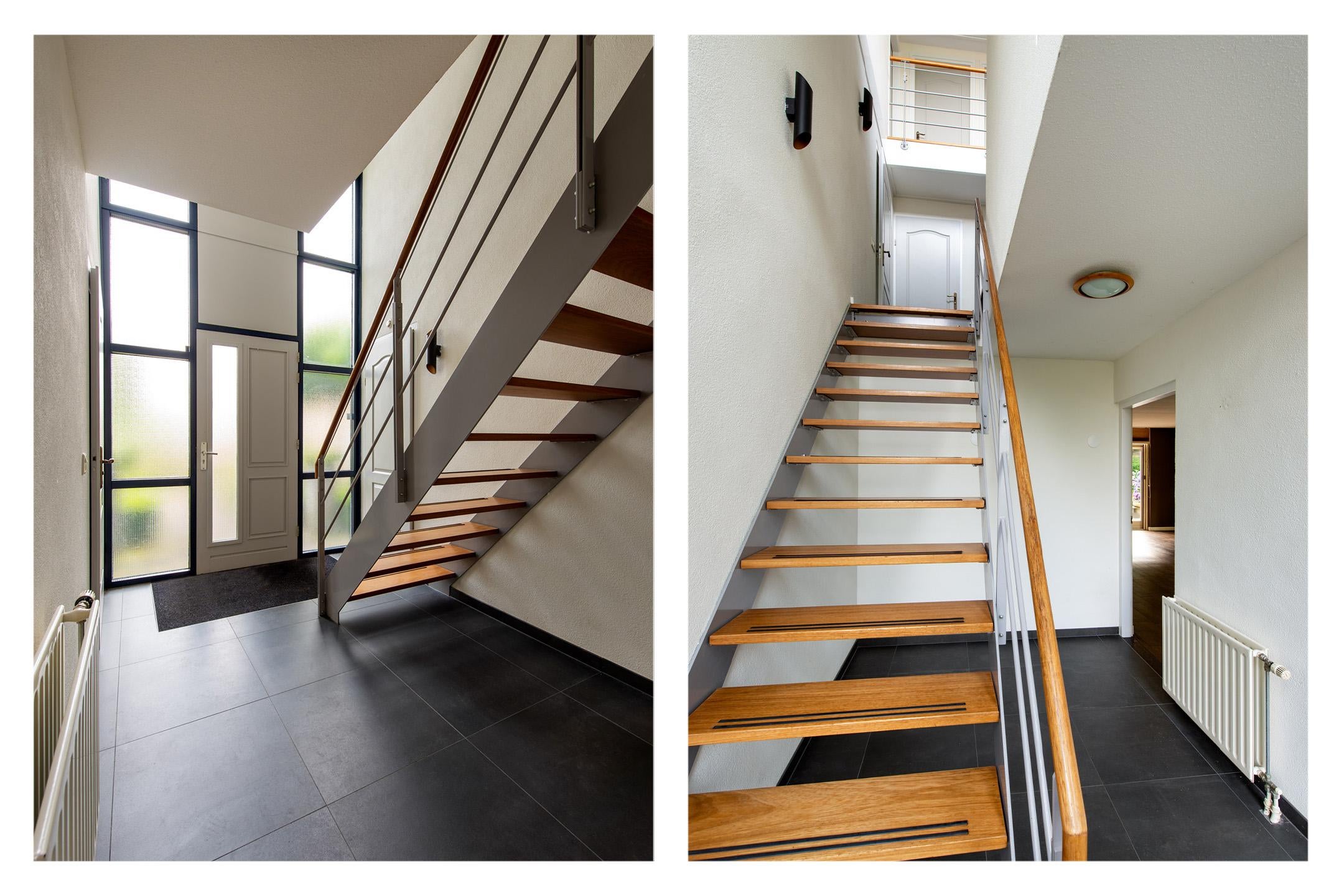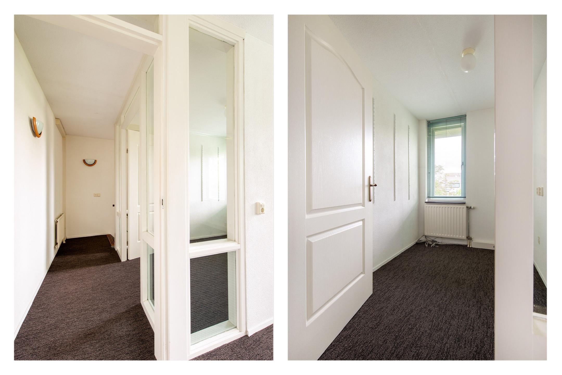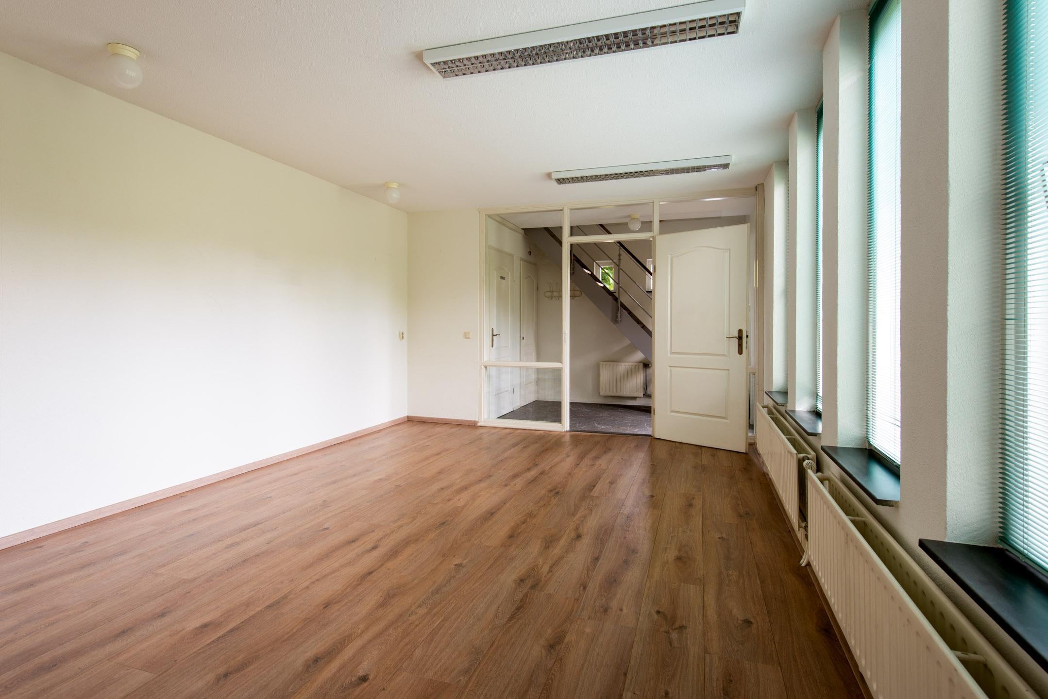 Achter de entree vind u een hal met toegang tot de kantoorkamer 1, toilet, berg/garderobekast en de trapopgang naar de verdieping.