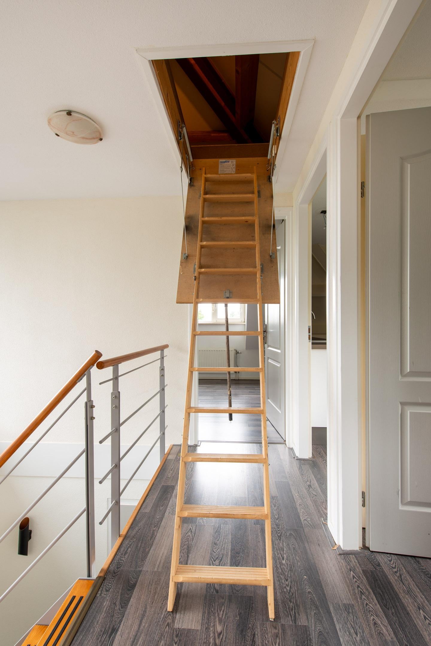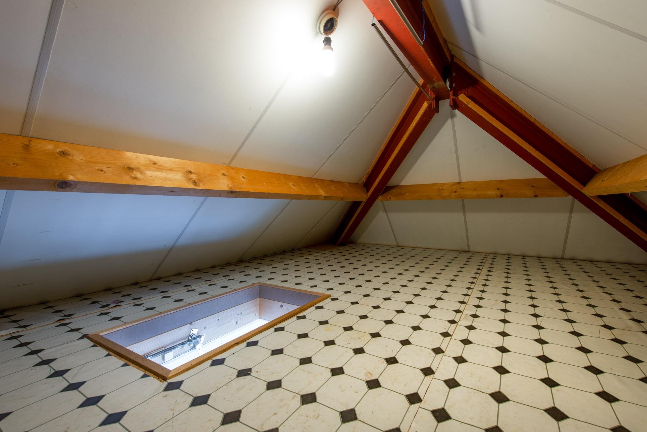 Middels een vlizotrap is de bergzolder bereikbaar. Deze ruimte direct onder de nok van het dak is ideaal voor opslag.