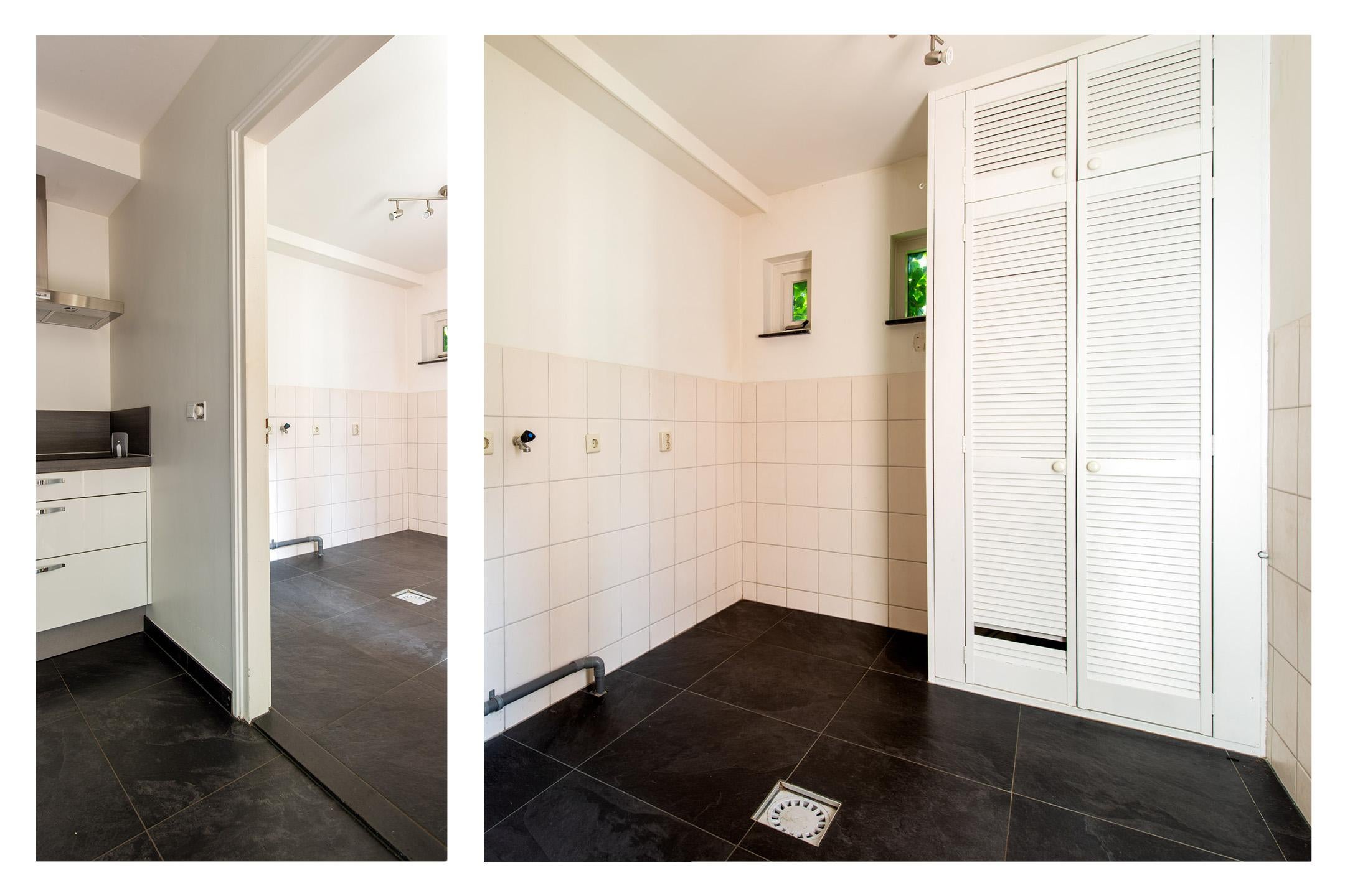 De aanwezige bijkeuken is bereikbaar via de keuken en achtertuin. In de bijkeuken vind u de aansluitingen voor de wasmachine en droger. Daarnaast biedt de bijkeuken voldoende ruimte voor het plaatsen van een extra koelkast en vriezer.