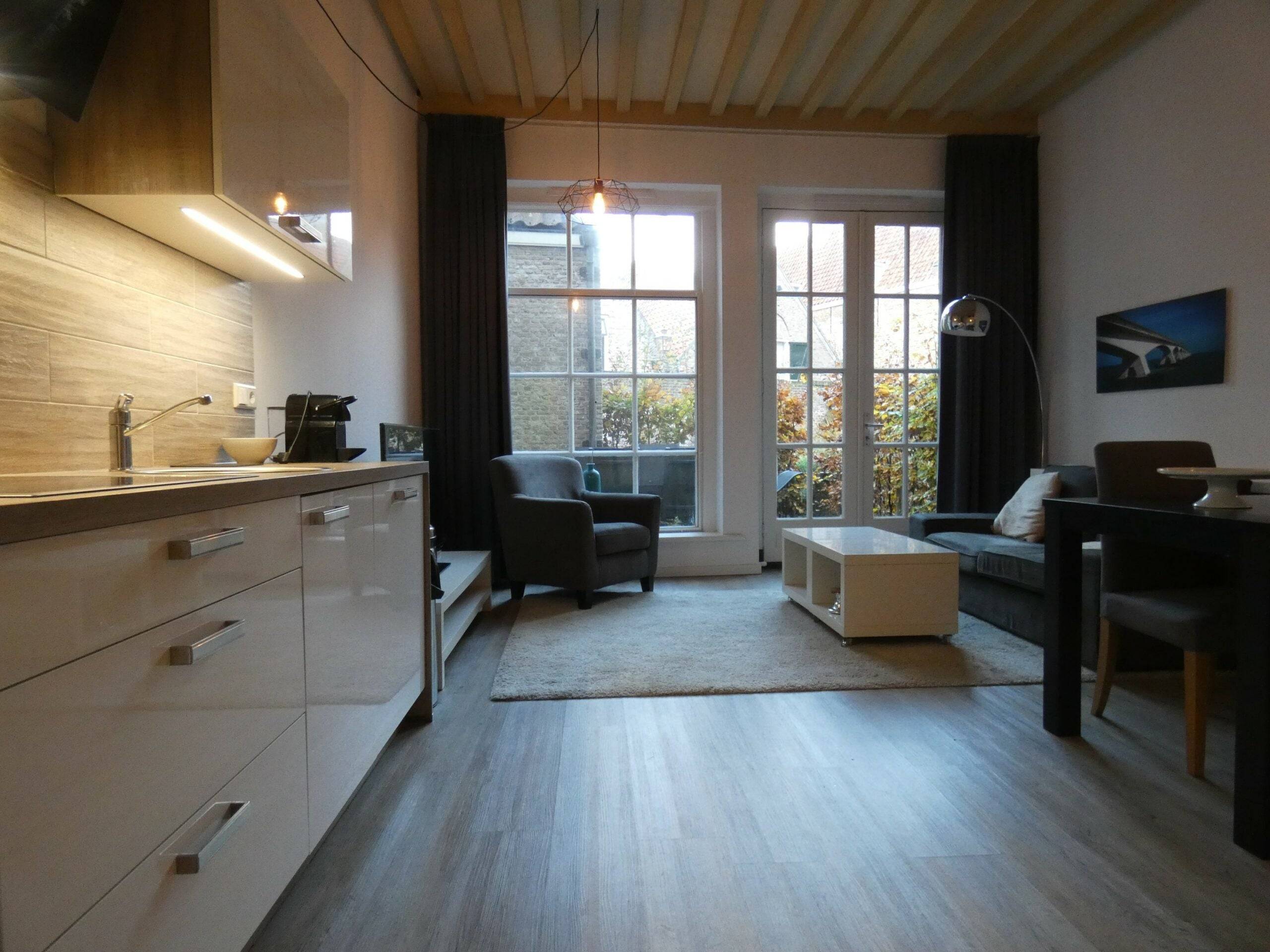 Er is een woonkamer met open keuken aanwezig. Deze kamer is gesitueerd aan de achterzijde van het complex met uitzicht over de binnentuin.
