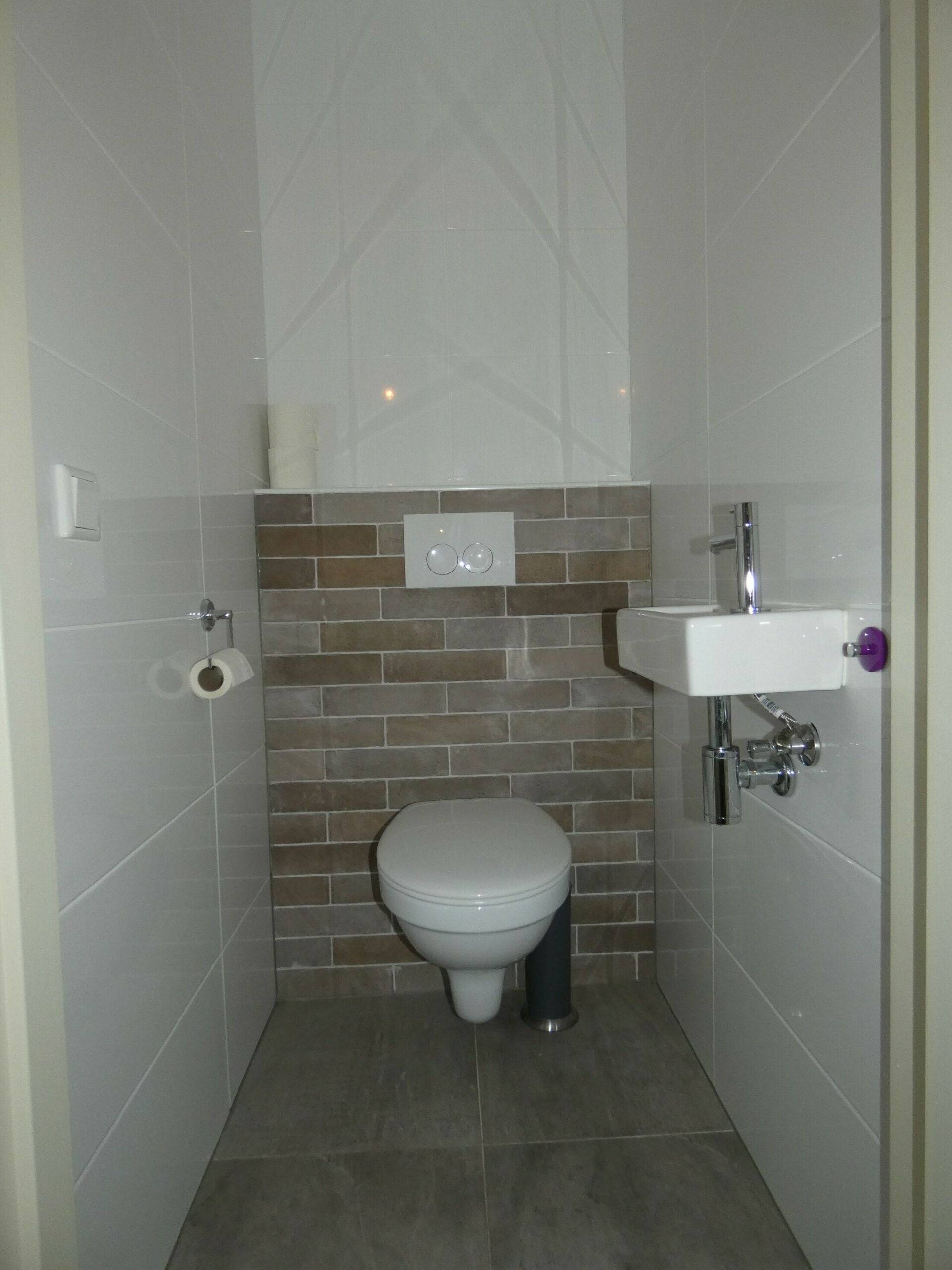 De toiletruimte is volledig betegeld en v.v. een hangend closet en fonteintje.