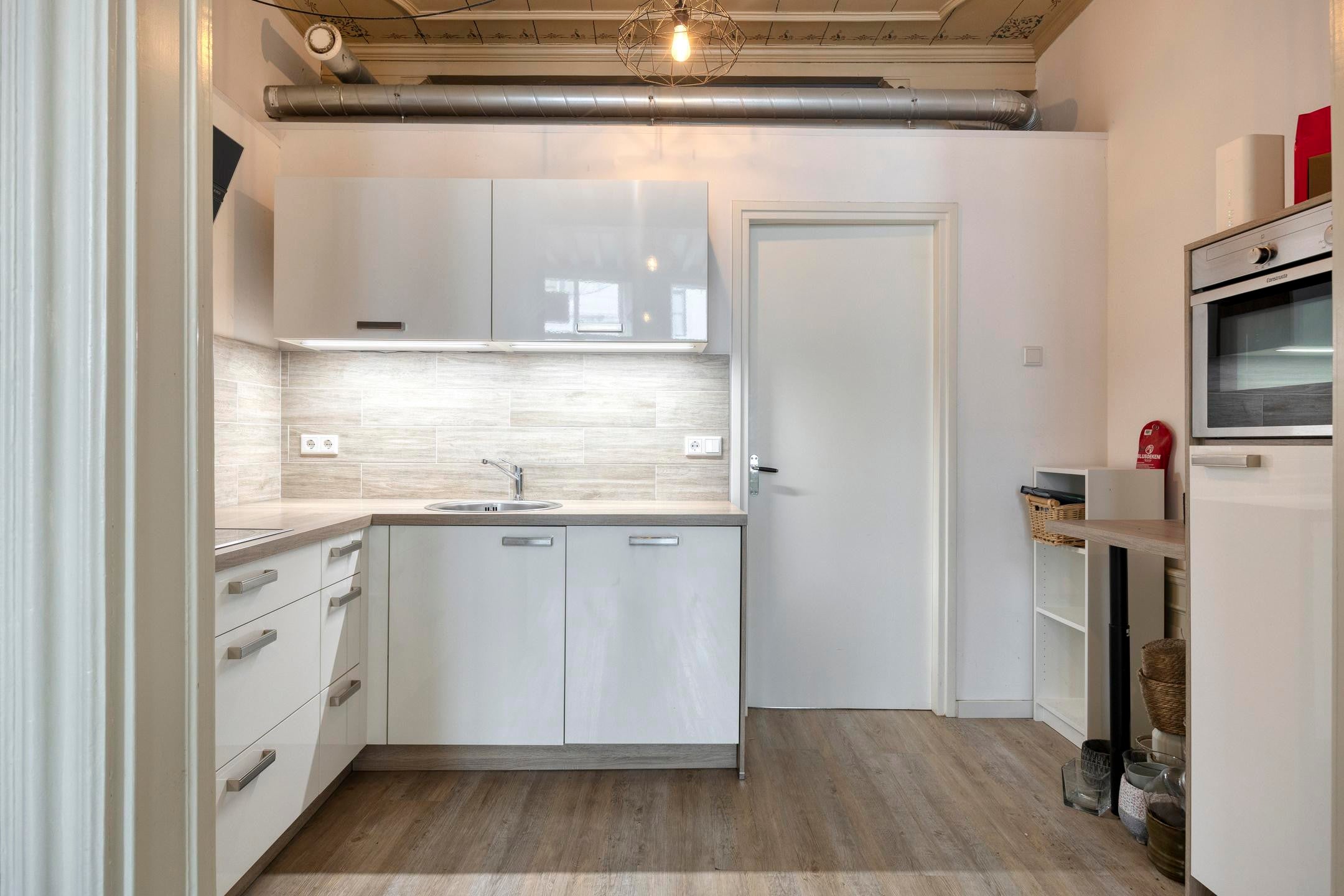 Open keuken uitgevoerd met luxe inbouwapparatuur zoals vaatwasser, inductiekookplaat, afzuigkap, combi-oven, koelkast