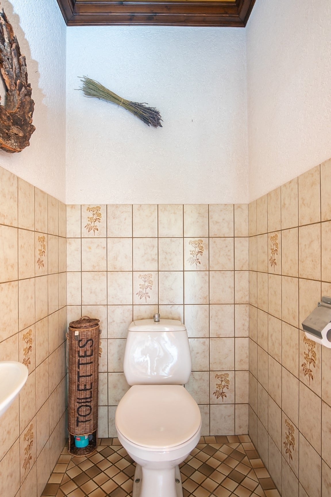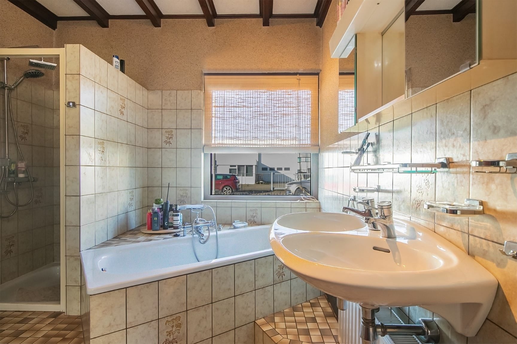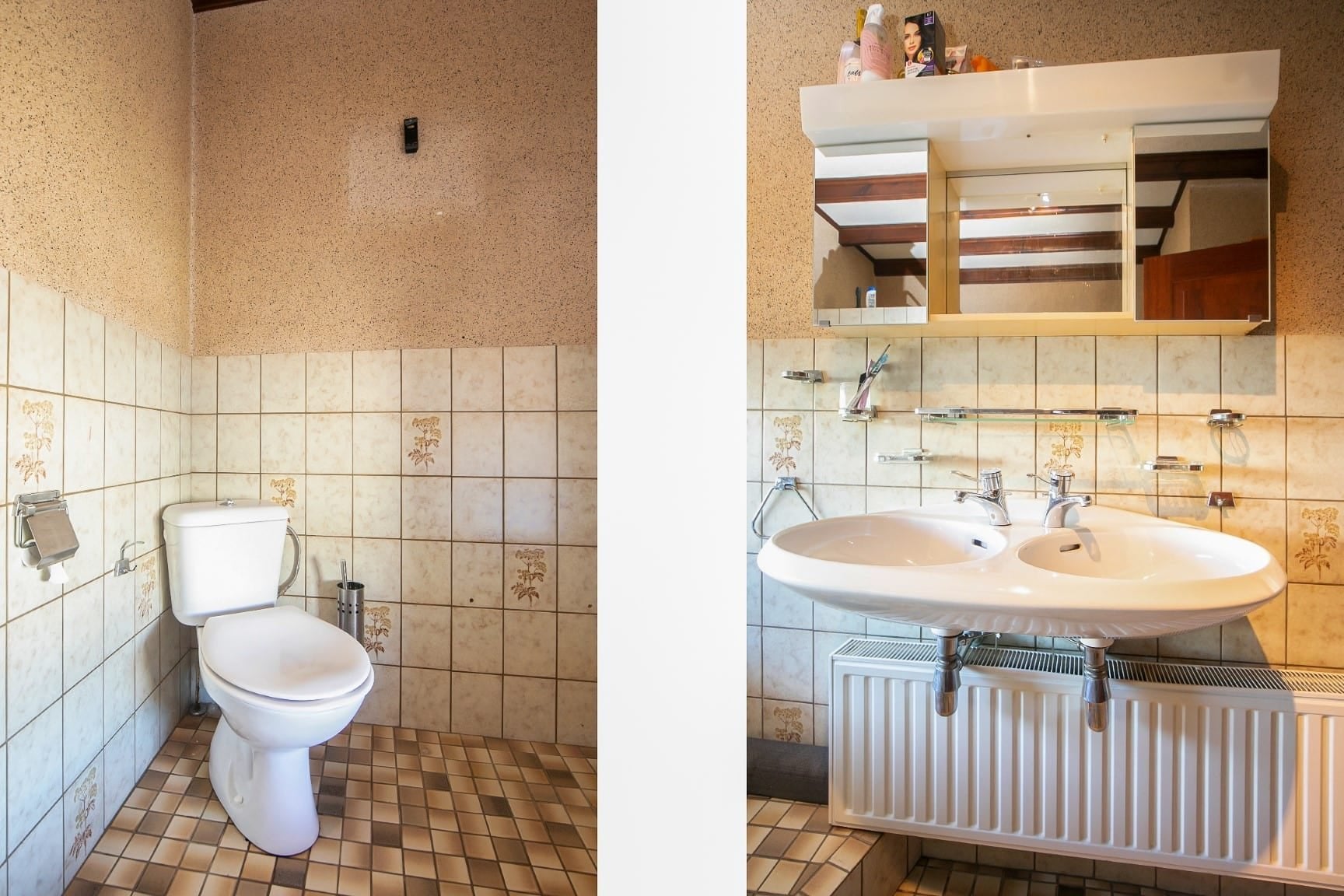 * Badkamer met ligbad, douche, 2e toilet, en dubbele wastafel.